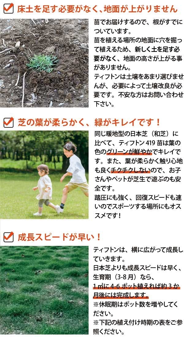ペットの尿害に強い!西洋芝 ティフトン419 芝苗 400ポット(5cm角ポット) ドッグラン 暖地型 スポーツ芝 天然芝