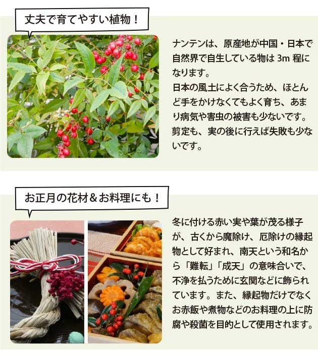 ![[生産者直送]南天 ナンテン 赤色 根巻き 樹高約100~120cm 常緑低木 庭木 苗木 生け垣 和風 紅葉 シンボルツリー 植木[t]](https://imgix.cainz.com/5000000185929/product/5000000185929_04.jpg?fm=webp&w=713&h=713&fit=fill&fill=solid&fill-color=white&auto=compress)