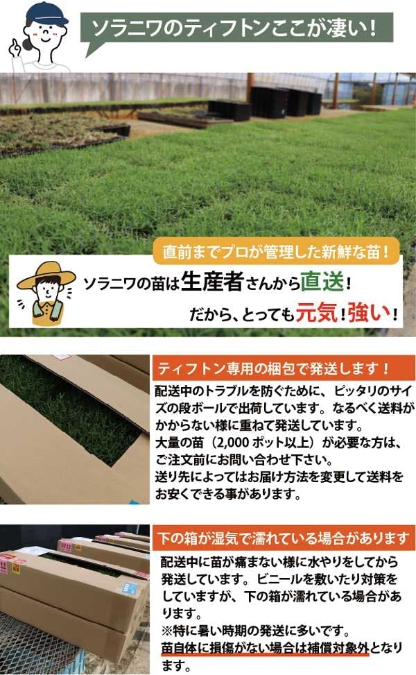 ペットの尿害に強い!西洋芝 ティフトン419 芝苗 150ポット(5cm角ポット) ドッグラン 暖地型 スポーツ芝 天然芝