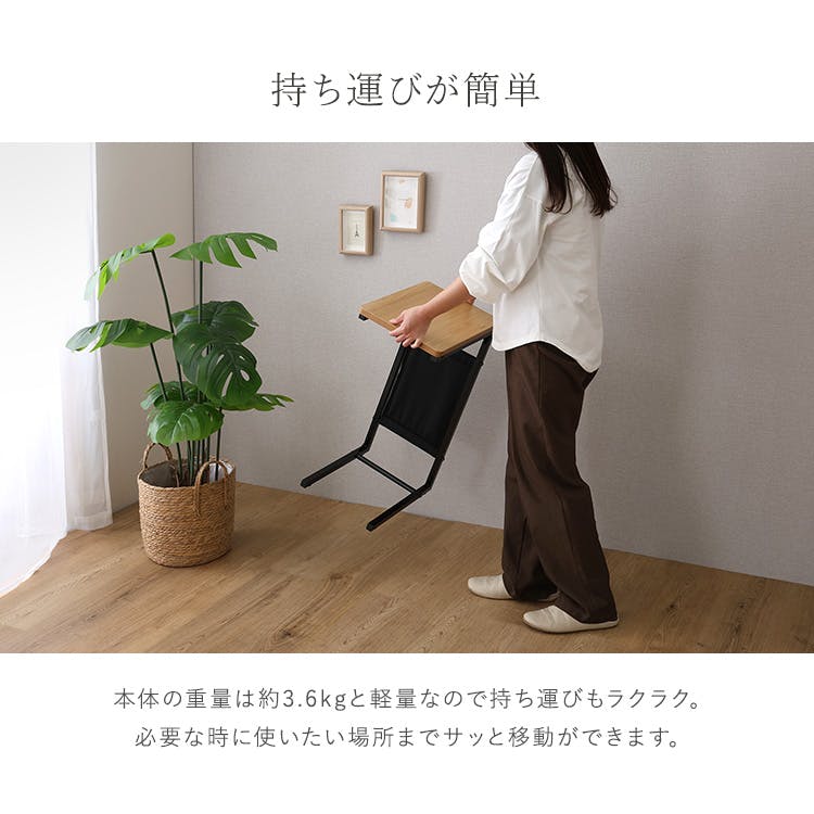 天板:MDF(化粧繊維板)、フレーム:スチール/粉体塗装、収納ポケット:ポリエステル100%(オックスフォード生地)、アジャスター部キャップ:ポリプロピレン、