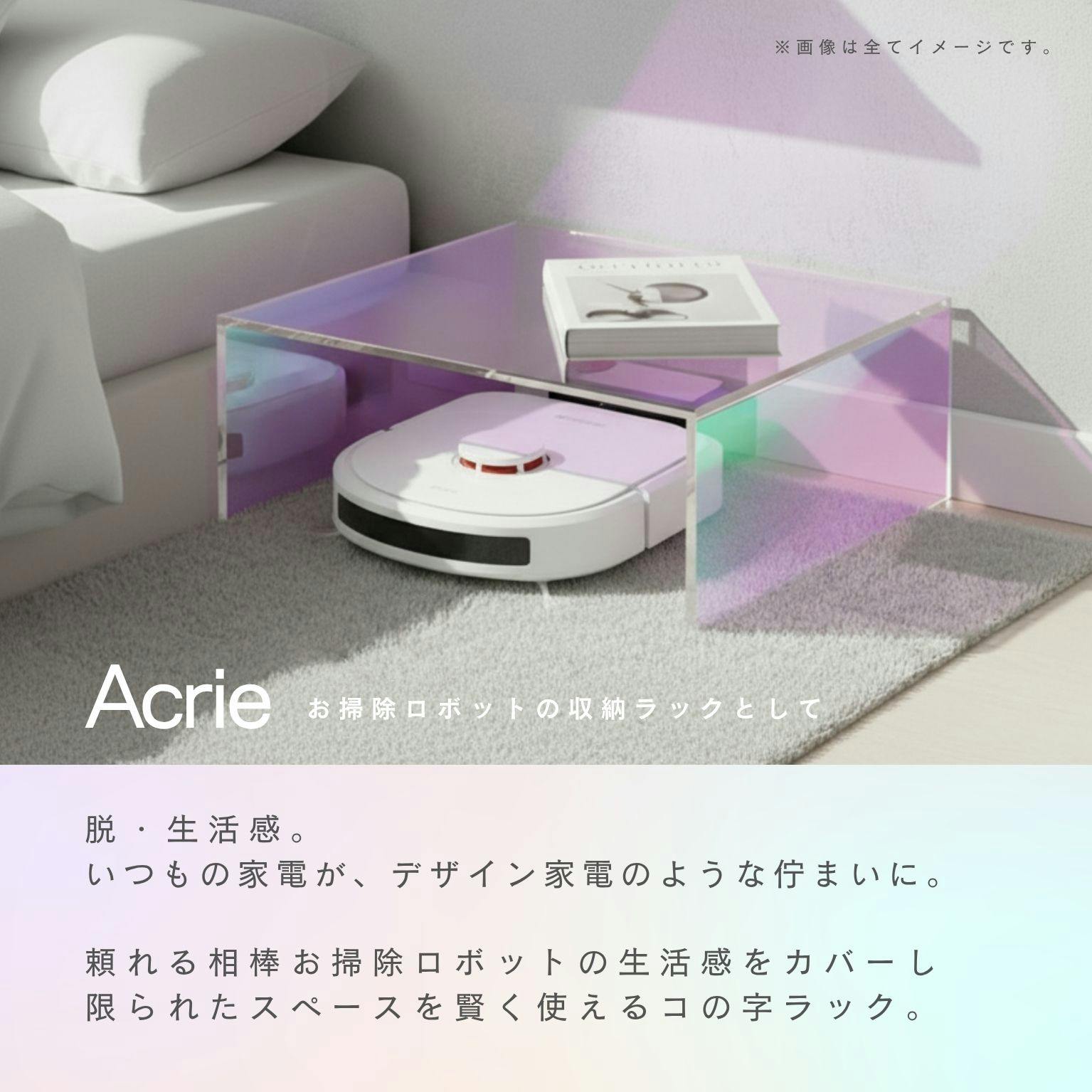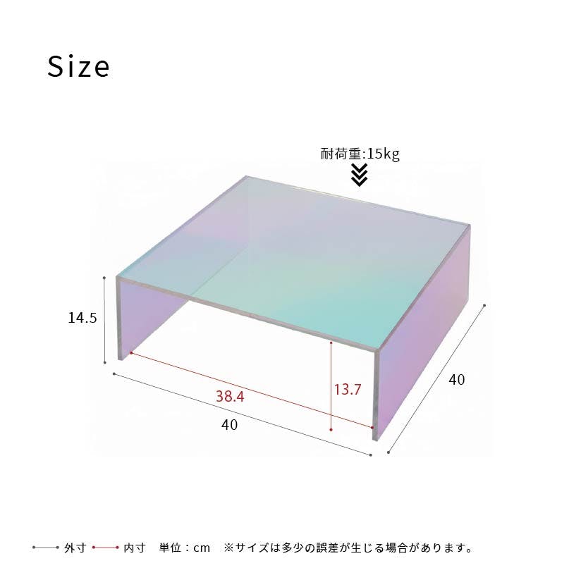 【アクリー コの字ラック(オーロラ/ホログラム)】 幅40×奥行40×高さ14.5cm お掃除ロボット収納 ディスプレイ シェルフ 収納 配線カバー ミニテーブル 花台 サイドテーブル 推し活 空間活用 アクリル製 韓国インテリア 完成品