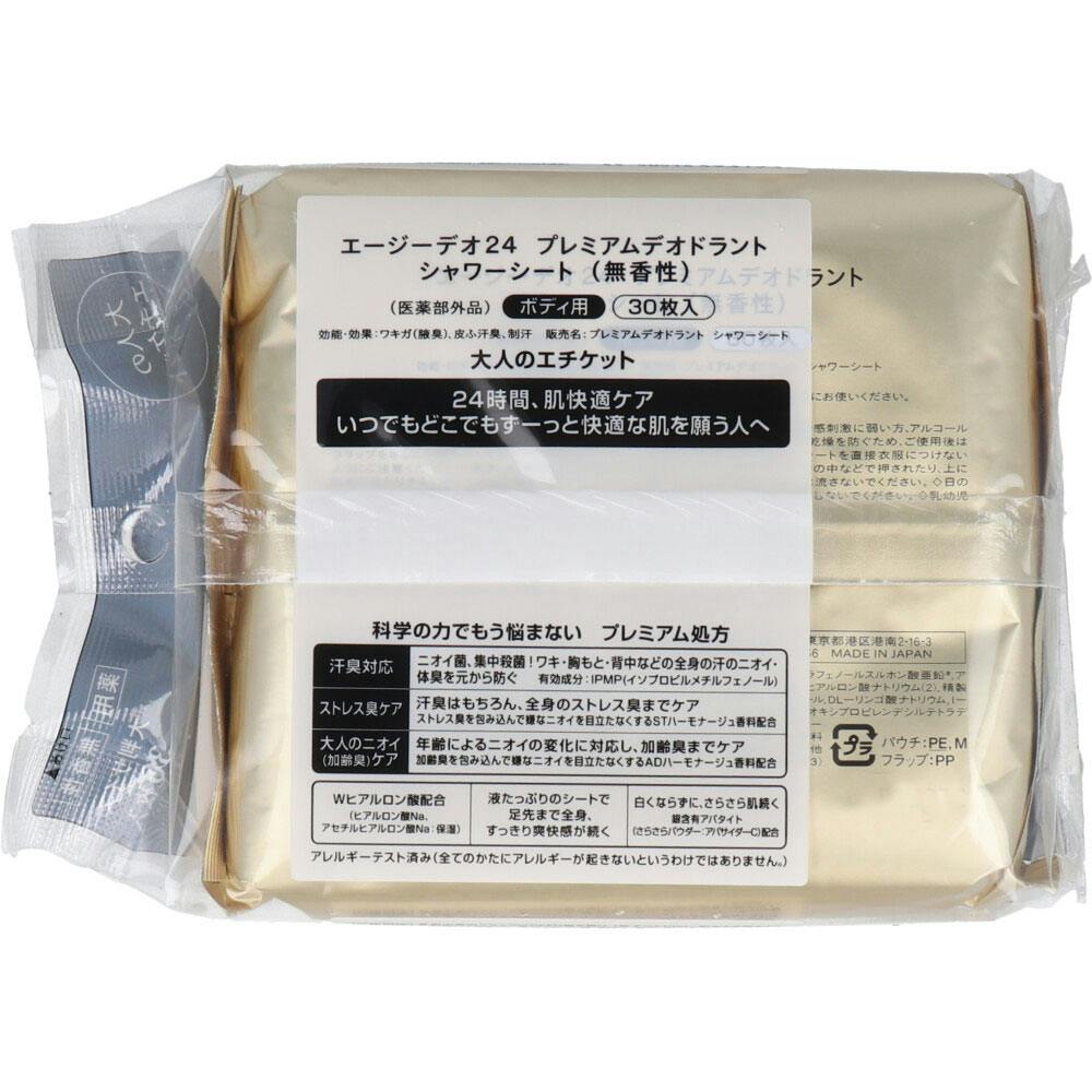 エージーデオ24 プレミアムデオドラント シャワーシート ボディ用 無香性 30枚入 ×1点【送料込み】 #4550516493194
