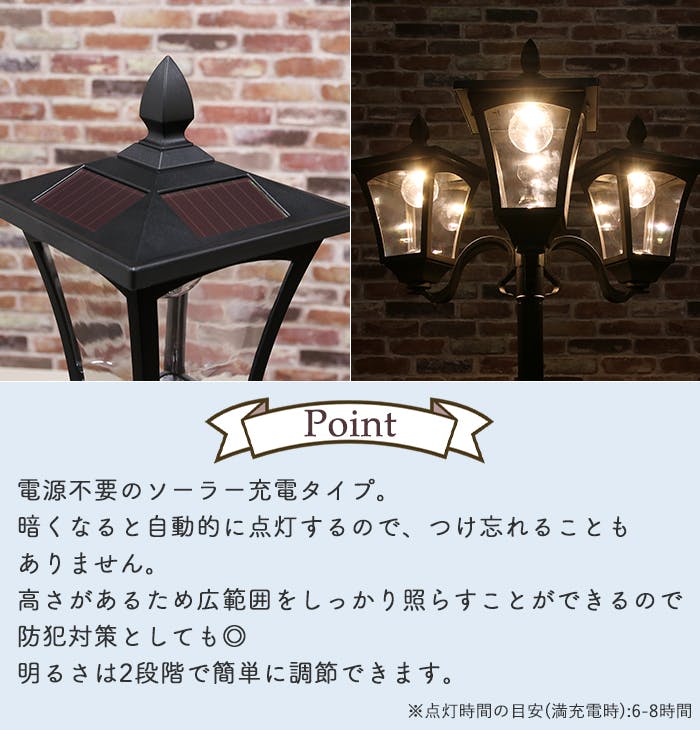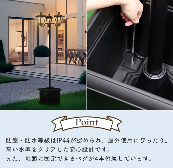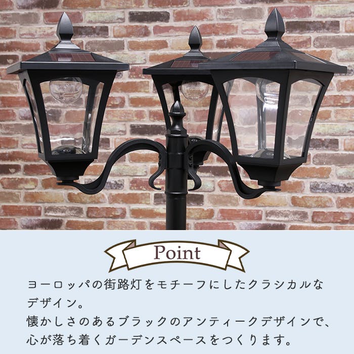 LEDソーラースタンドライト プランター付き 3灯 ソーラーパネル アンティーク ソーラーガーデンライト クラシック 防塵 防水 屋外 照明