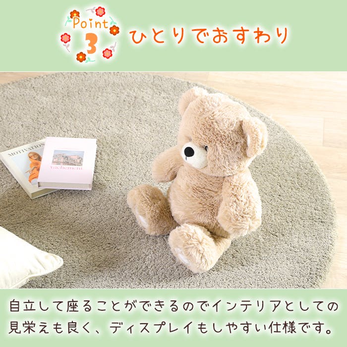 思わず抱きしめたくなる、ふわふわな手触りのくまのぬいぐるみ。愛らしい表情とぽってりしたフォルムが魅力的なテディベアです。お子様や出産祝いの贈り物、誕生日やクリスマスプレゼントなどにいかがでしょうか。
