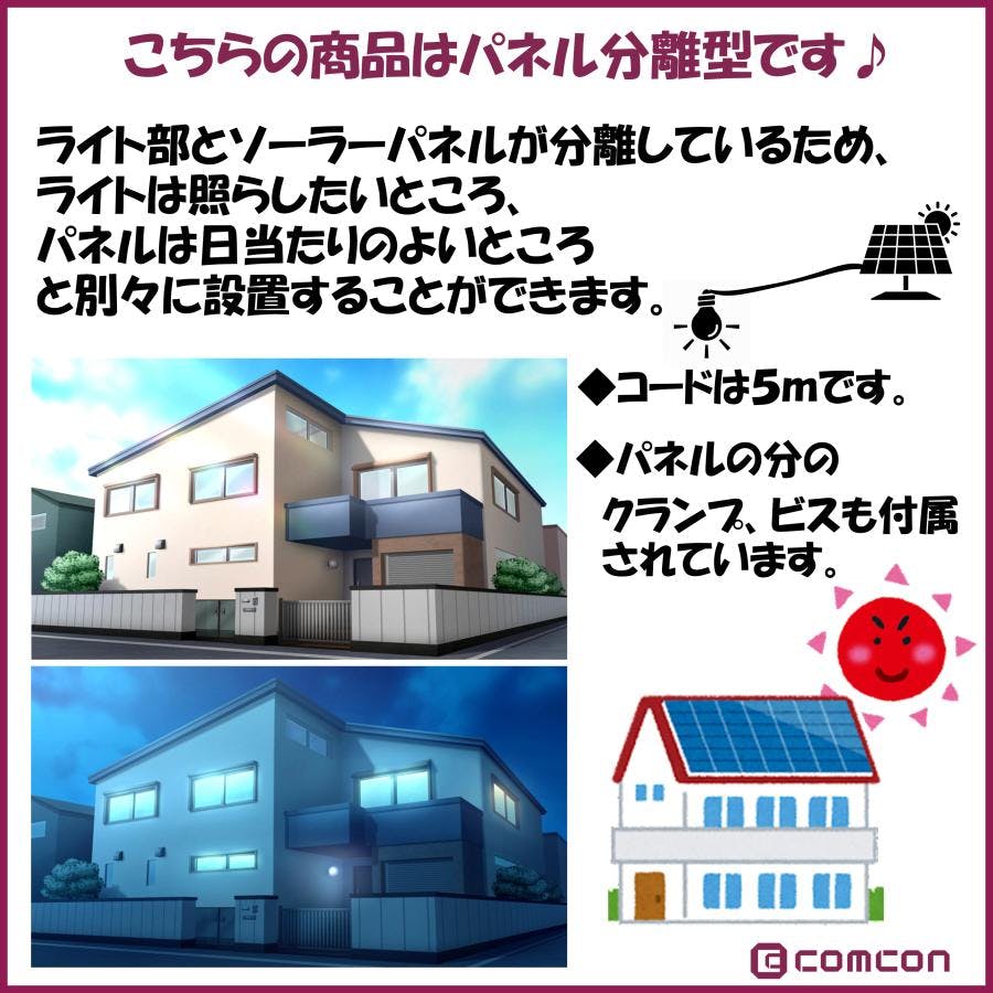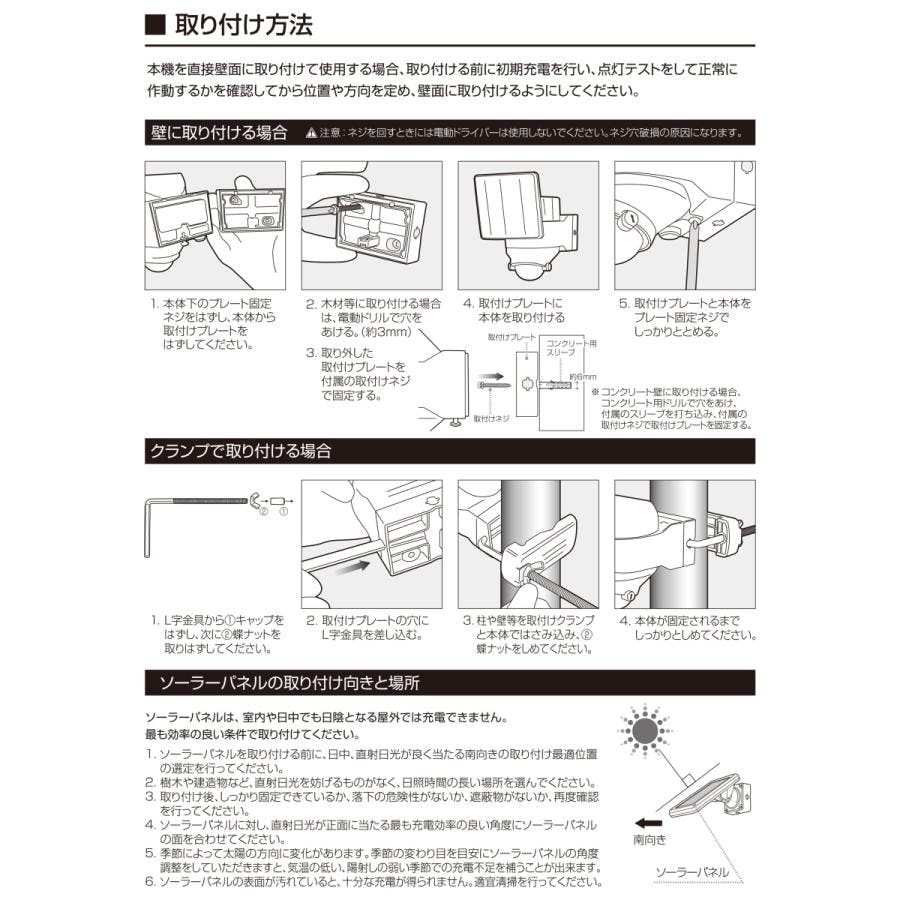 センサー ライト CLS-100 人感 屋外 ソーラー ライト LED クランプ 分離 玄関 灯 照明 明るい 明暗センサー パネル 分離型 太陽光 防雨 壁 防犯ライト 4570000081706