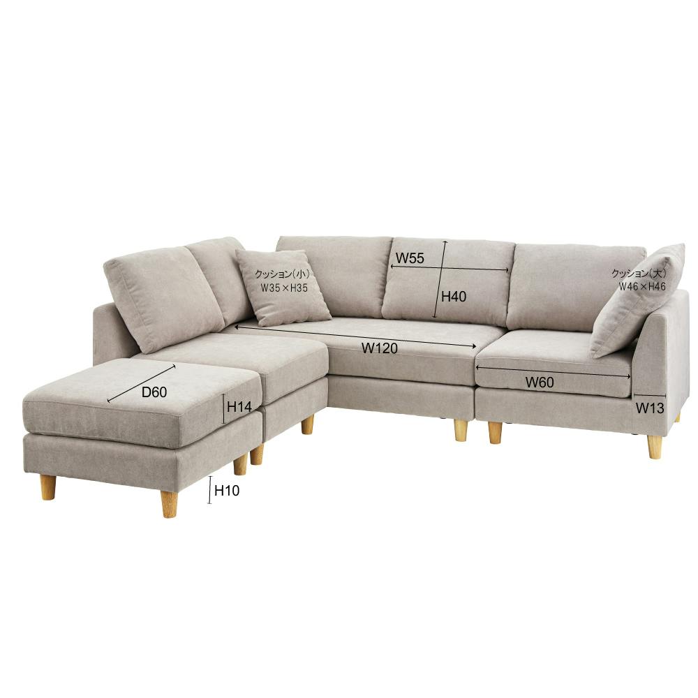 1人掛:W60×D73×H74×SH39 / 2人掛:W133×D73×H74×SH39 / コーナー:W73×D73×H74×SH39 / オットマン:W60×D60×H39、重量:56kg