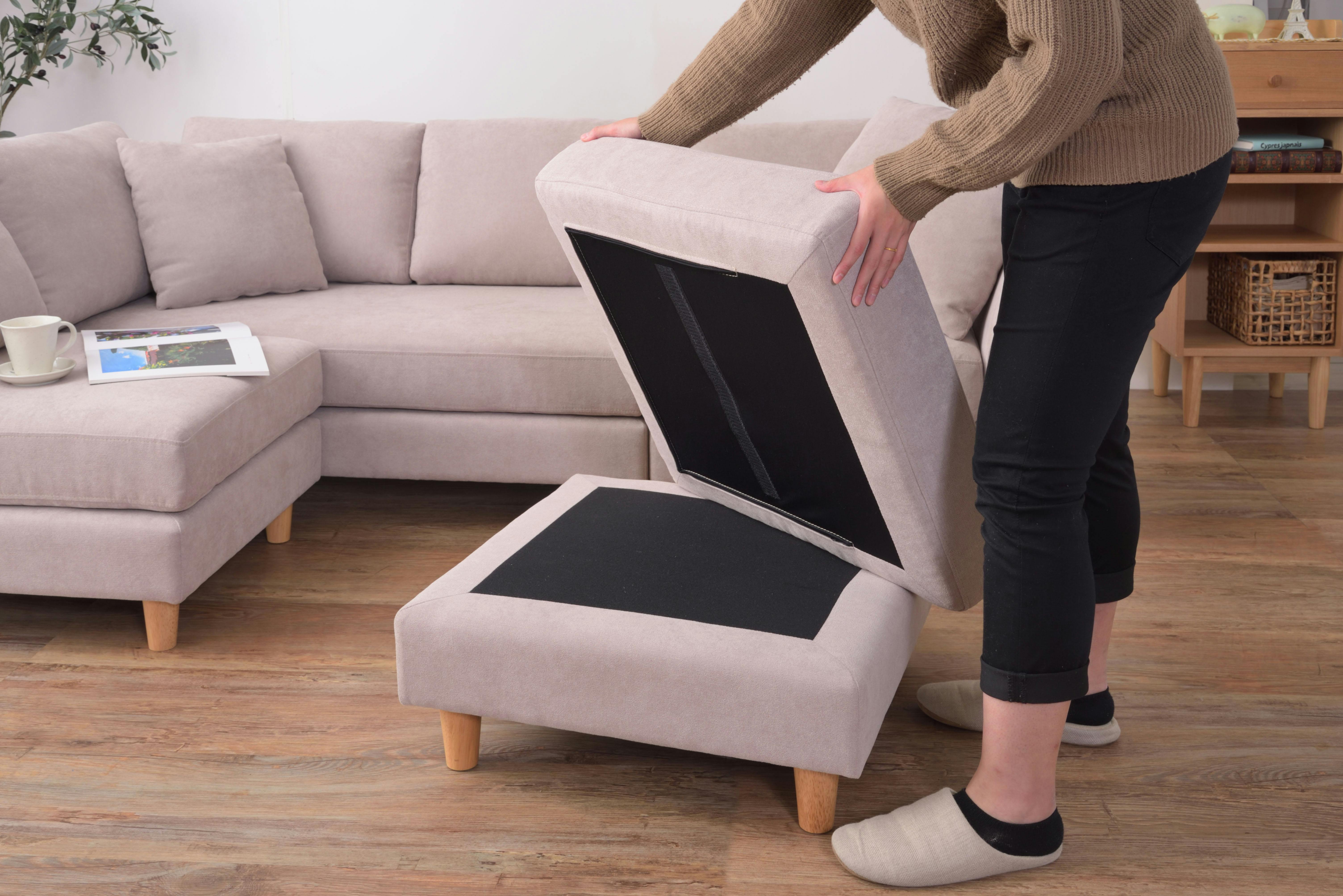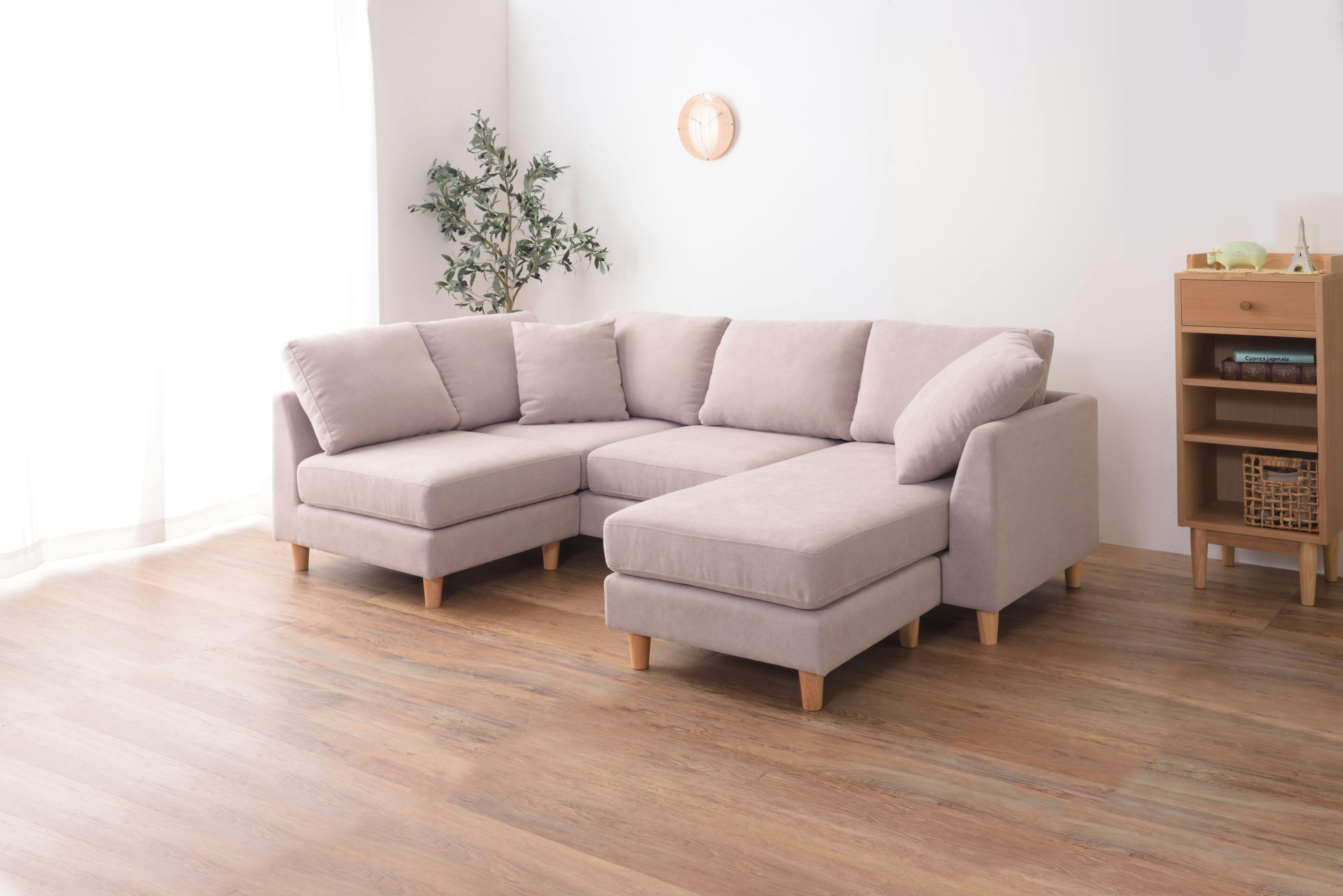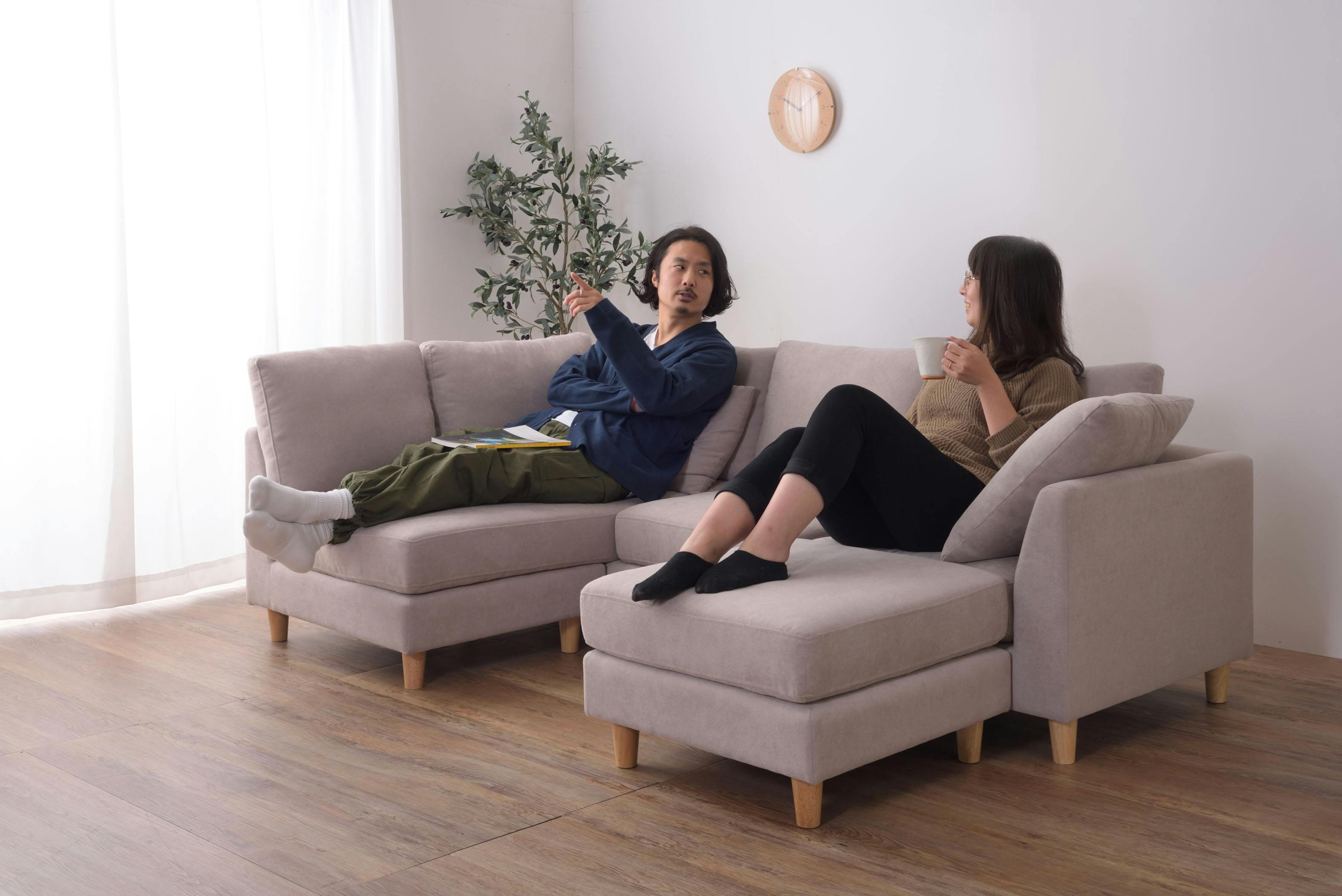 ソファ ソファー 3人掛け 3人以上 カウチソファ ダブルカウチ 北欧 オットマン付き クッション付き 脚取り外し ロータイプ使用可 おしゃれ ベージュ グレー
