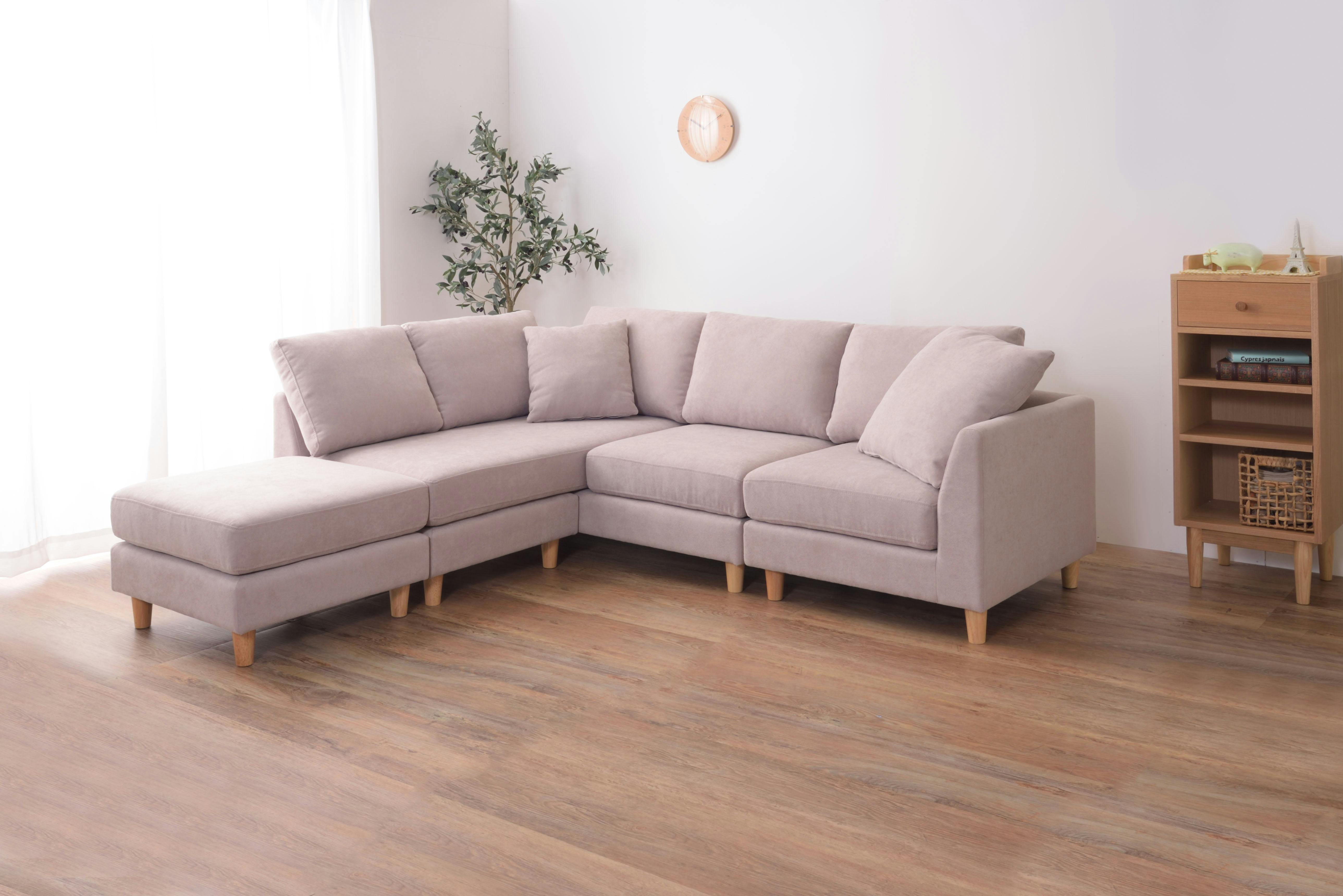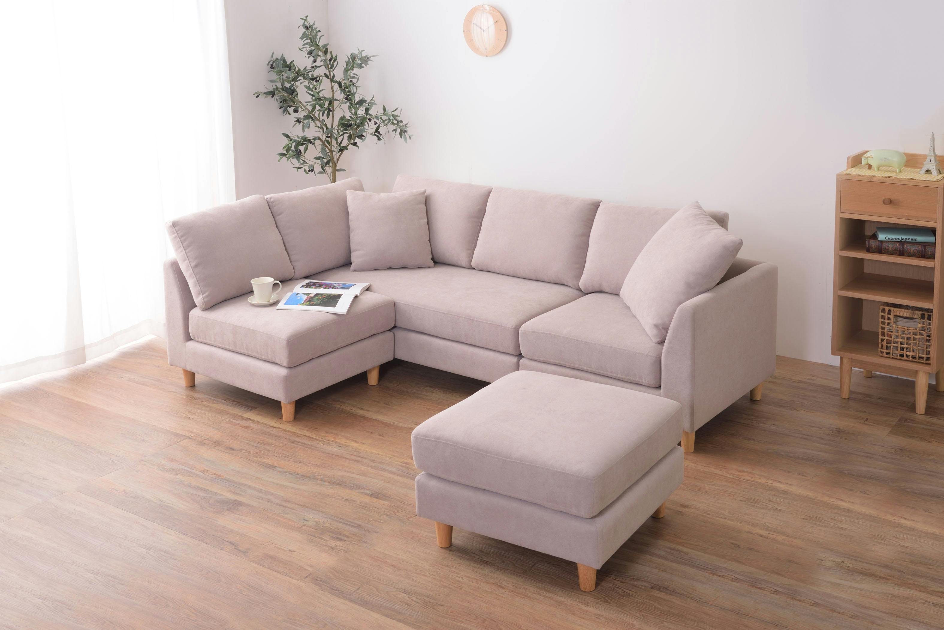 アムール ソファ /色:ベージュ / 1人掛+2人掛+コーナー+オットマン ねじ込み式 【送料込み】