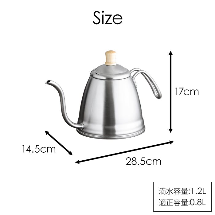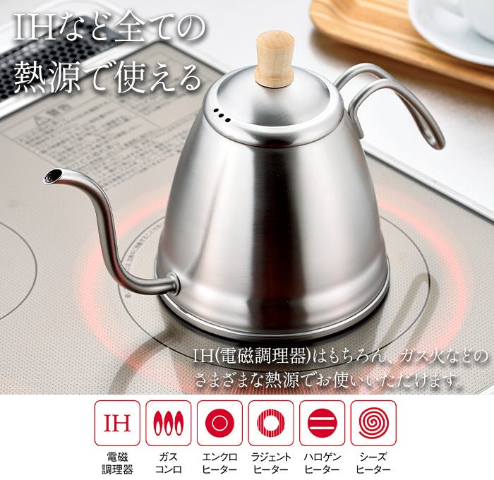 コーヒー ドリップポット IH ガス火対応 ステンレス シンプル 細口 ケトル やかん オール熱源対応