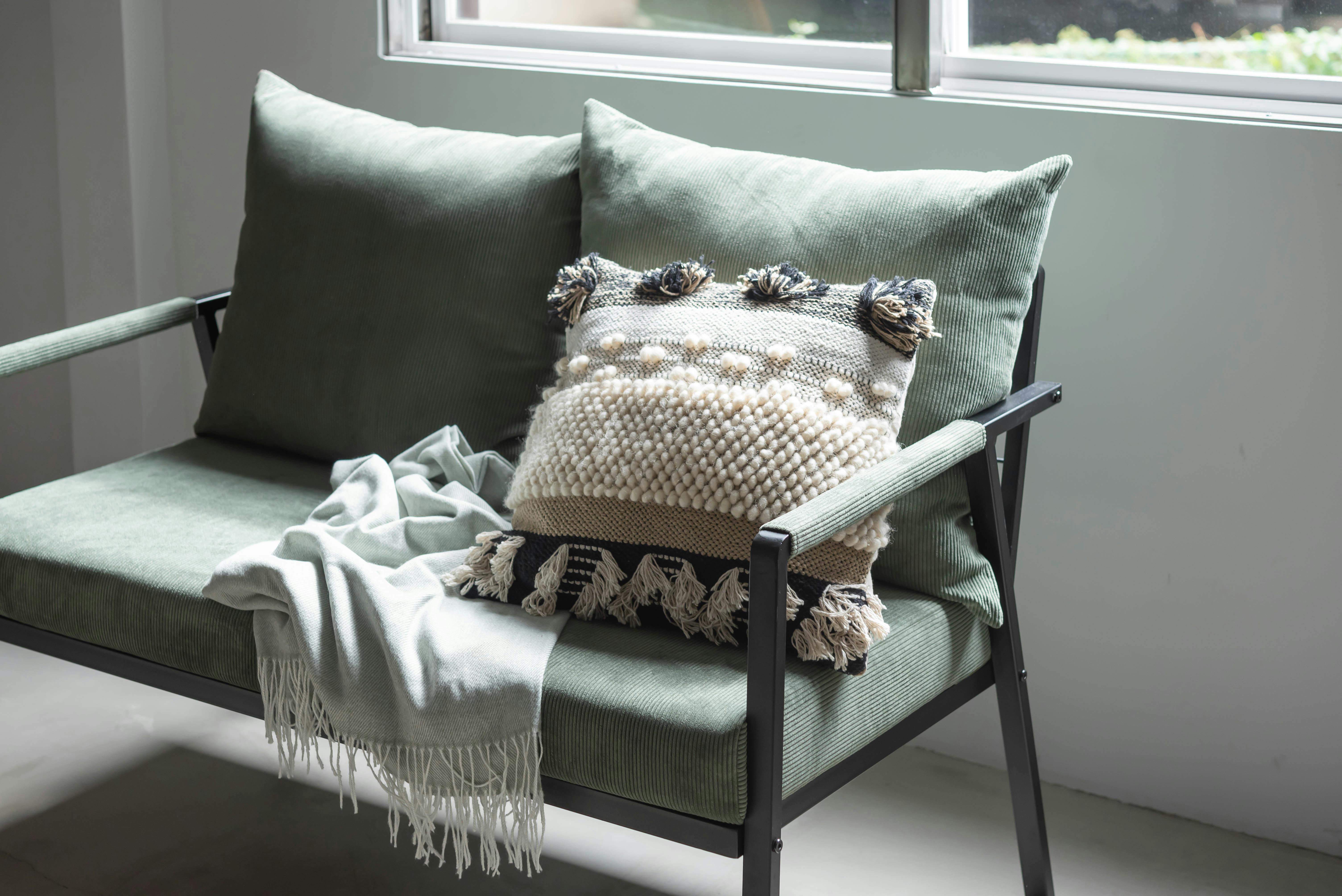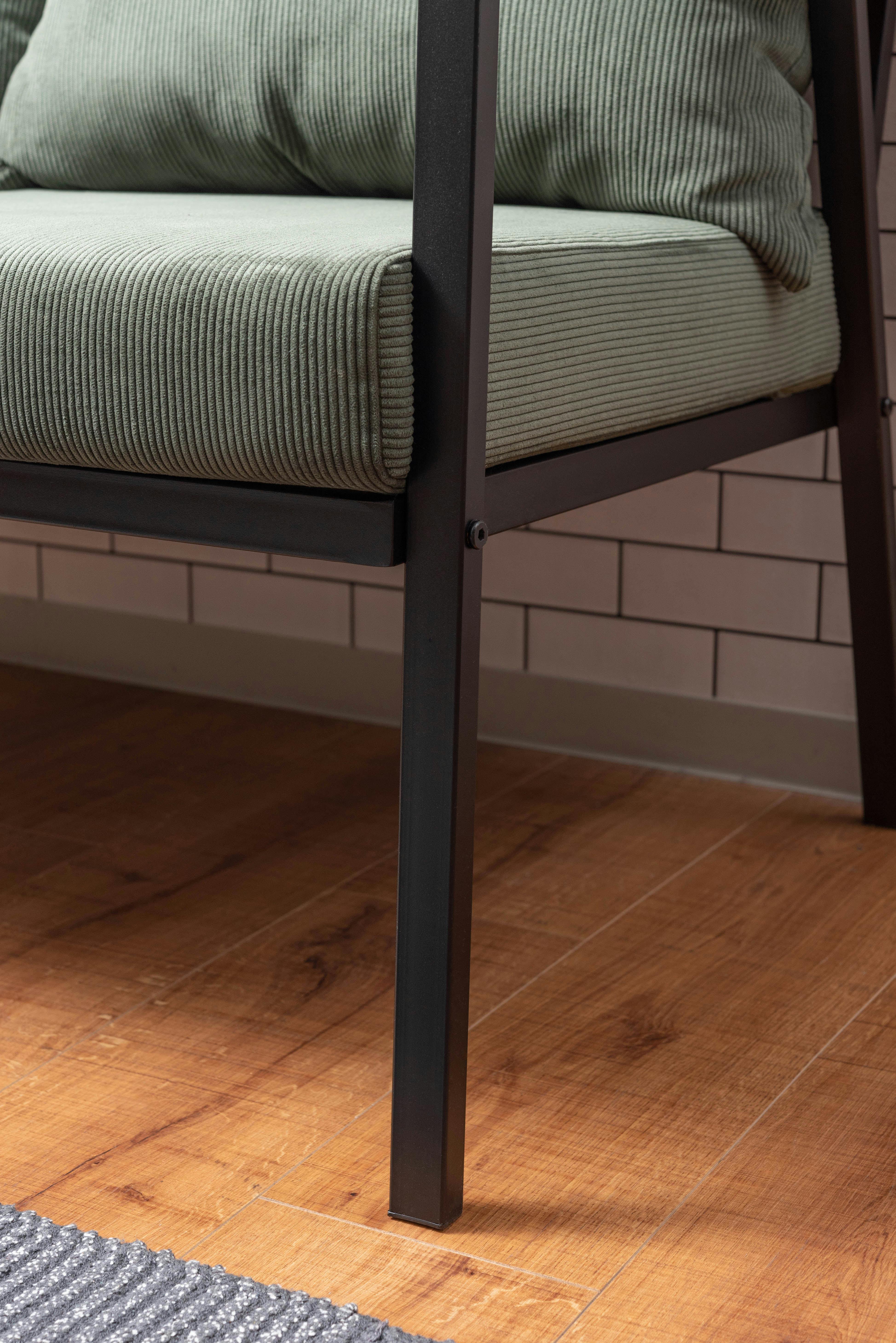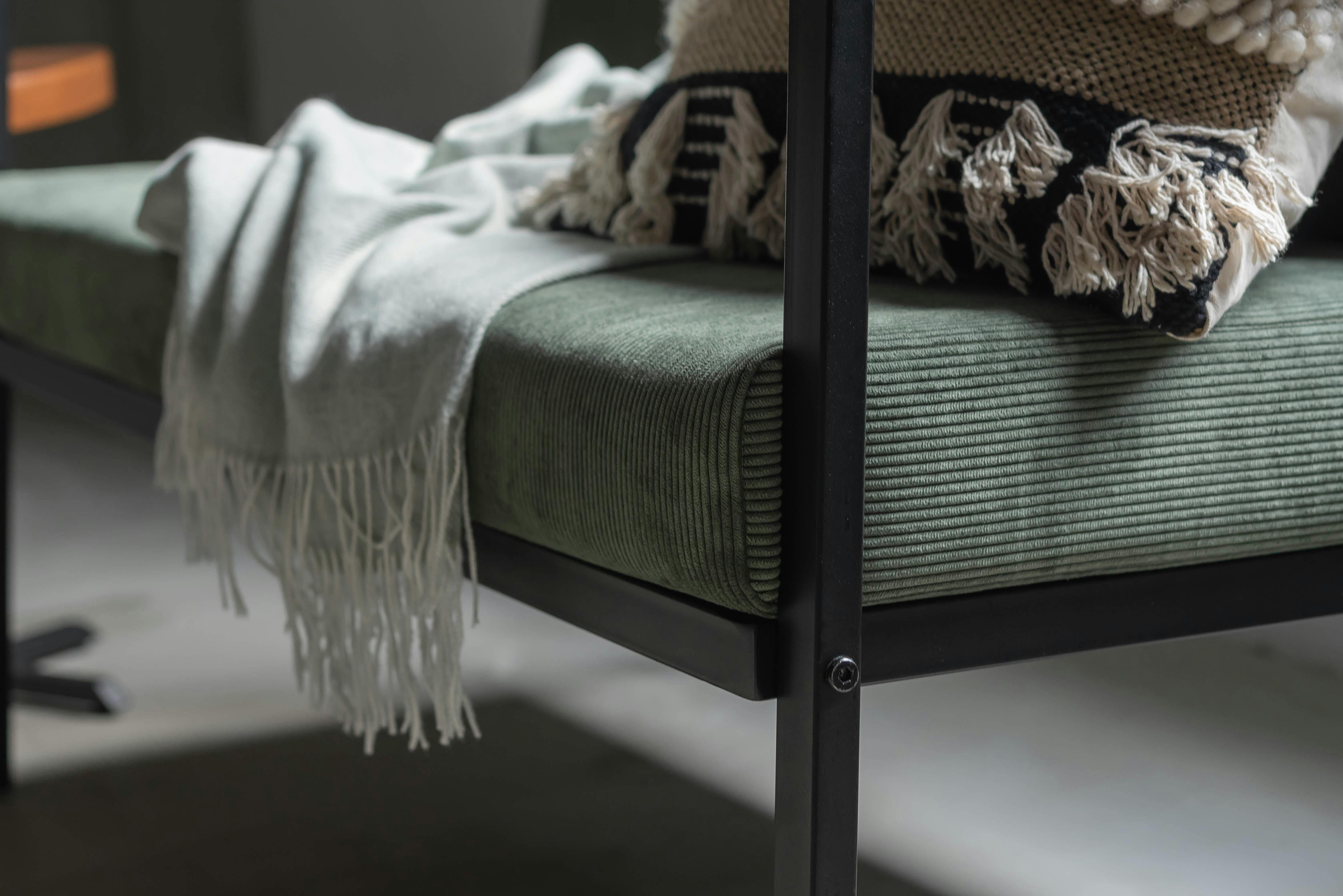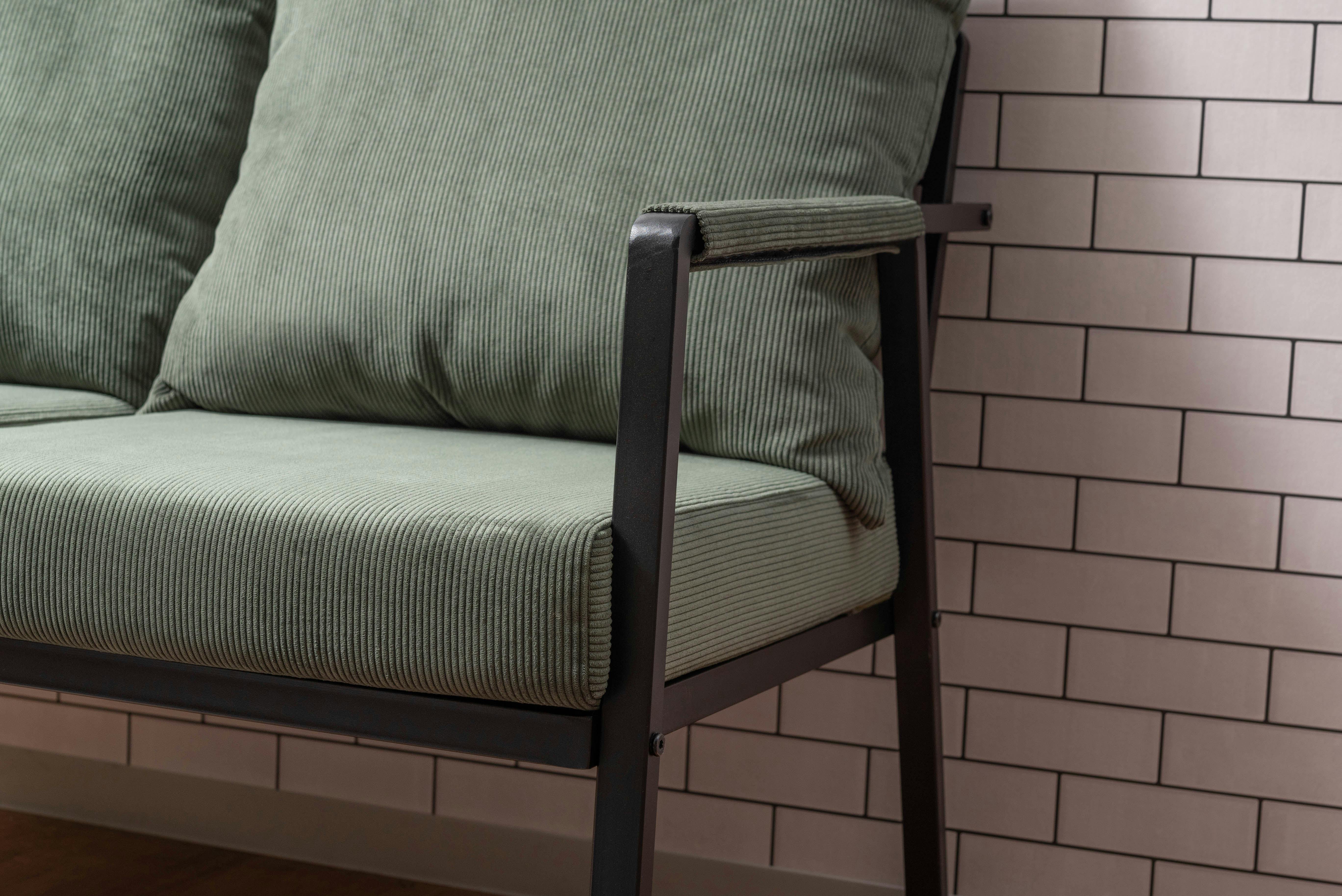 2人掛けソファ ソファー おしゃれ スチール 黒 ブラック コーデュロイ 肘掛けあり アーム付き インダストリアル モダン シンプル グリーン ベージュ グレー