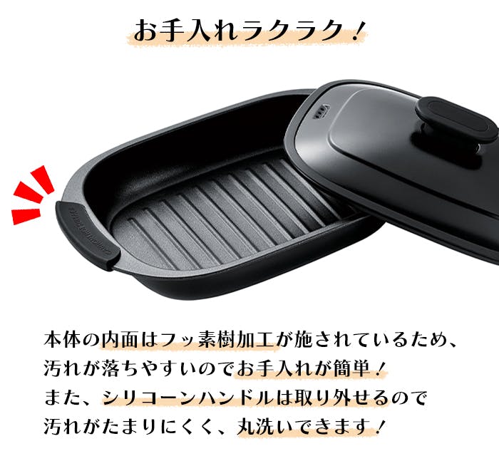 ■[本体] W28.5×D17.7×H10.2cm ■[プレート内寸] W22.5×D15.5×H3.8cm ■[焼き面] W19.5×D13cm
