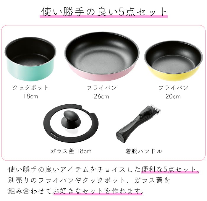 フライパンセット 着脱式ハンドル フライパン 20/26cm クックポット 18cm ガス火 IH対応 ガラス蓋 オール熱源 取っ手 取り外し [コロセレ]シリーズ