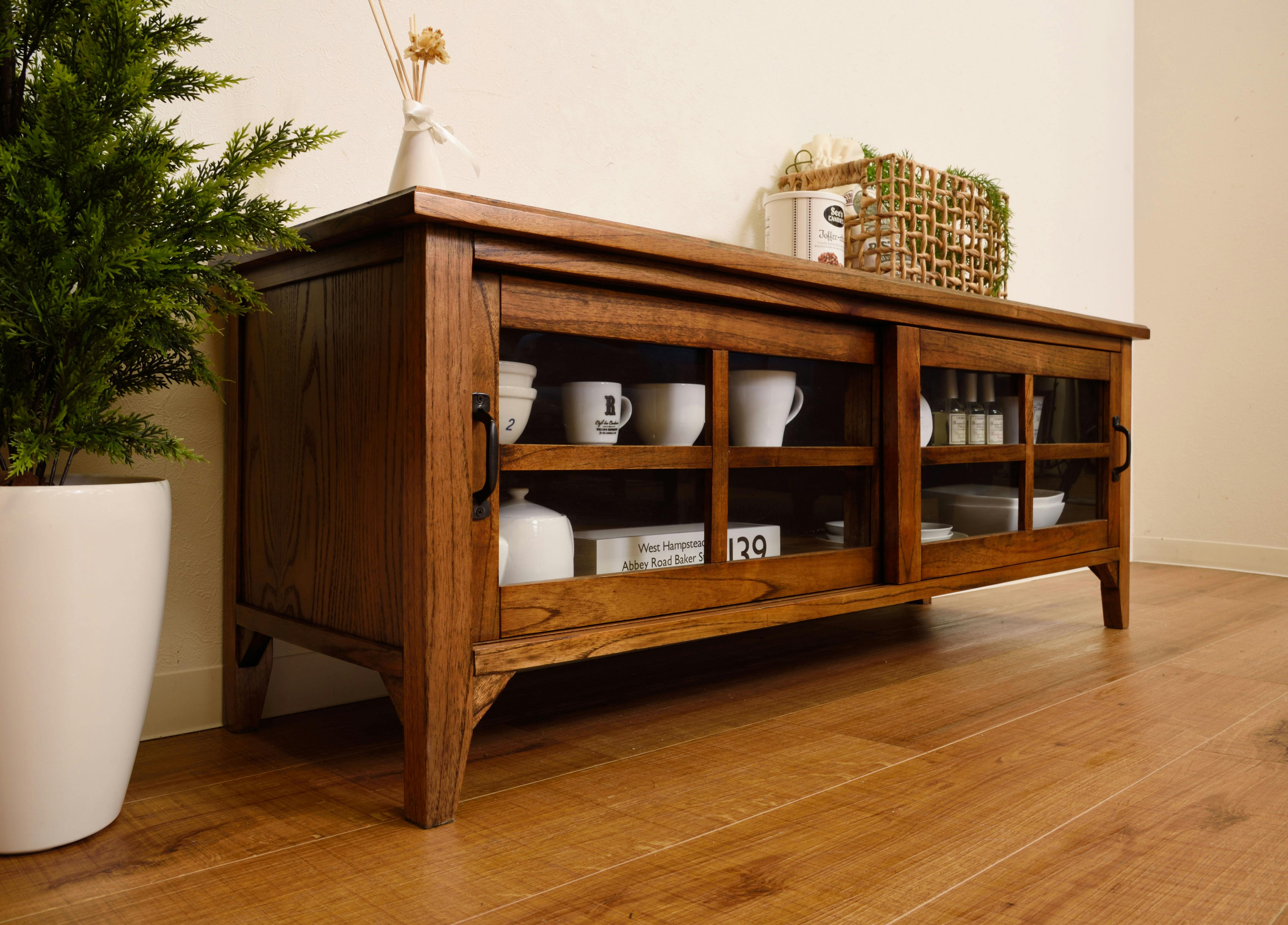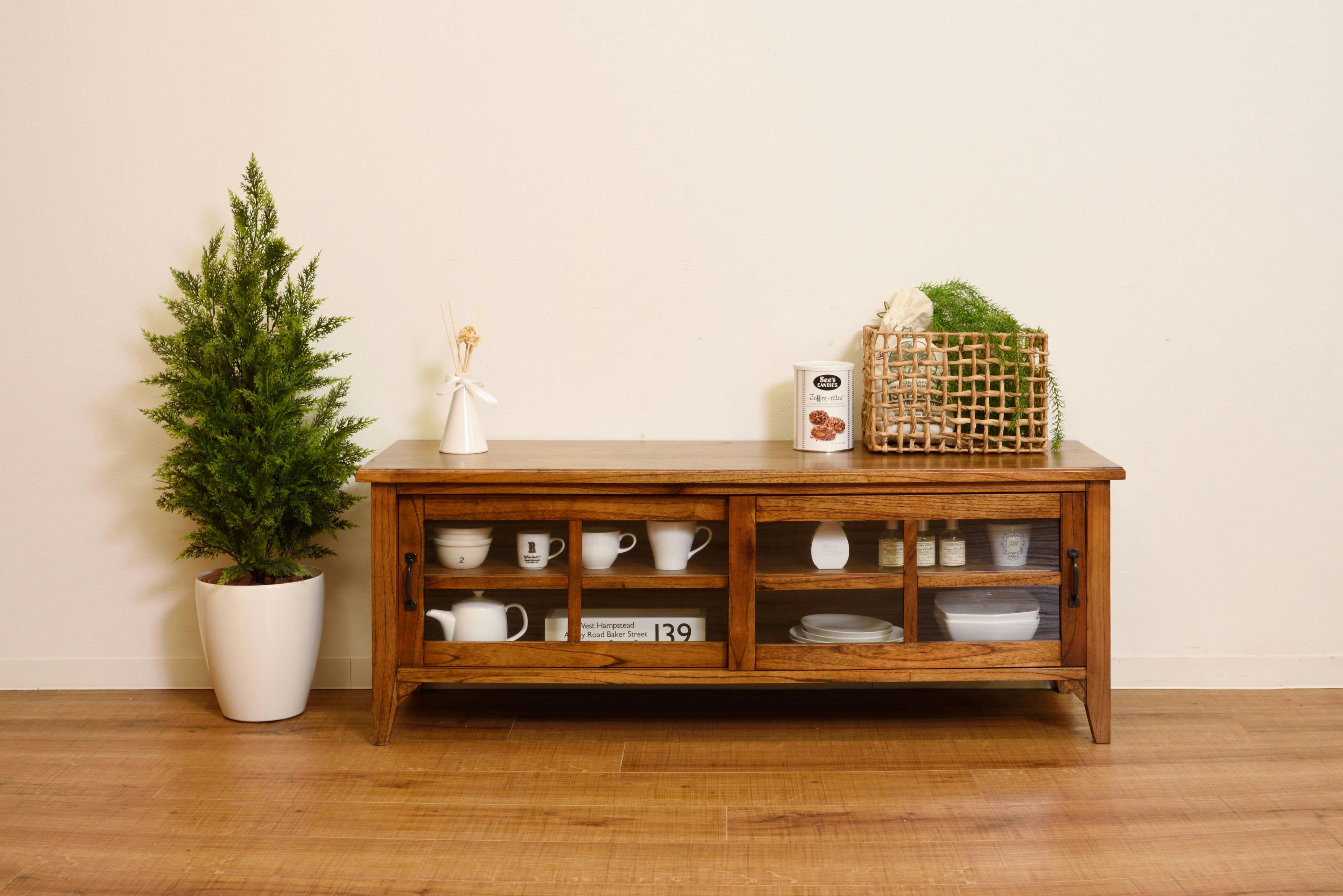 ティンバー ローボード /色:ブラウン / 幅120×奥行40×高さ45cm / テレビ台 TVスタンド TV台 ロータイプ おしゃれ 天然木 AVボード 完成品 【送料込み】