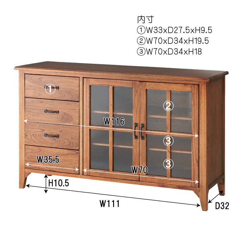 ティンバー キャビネット /色:ブラウン / 幅120×奥行40×高さ75cm / 完成品 【送料込み】