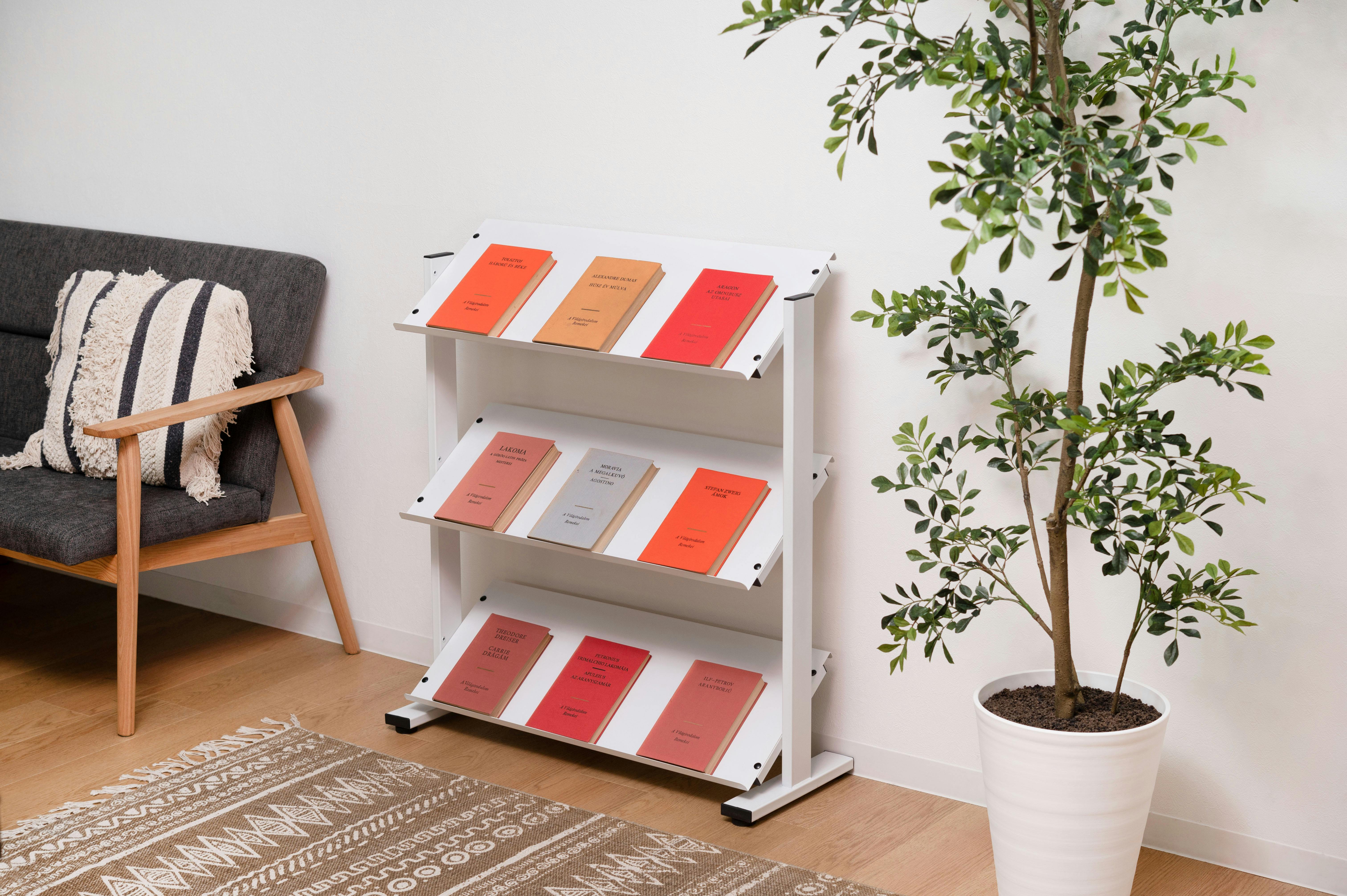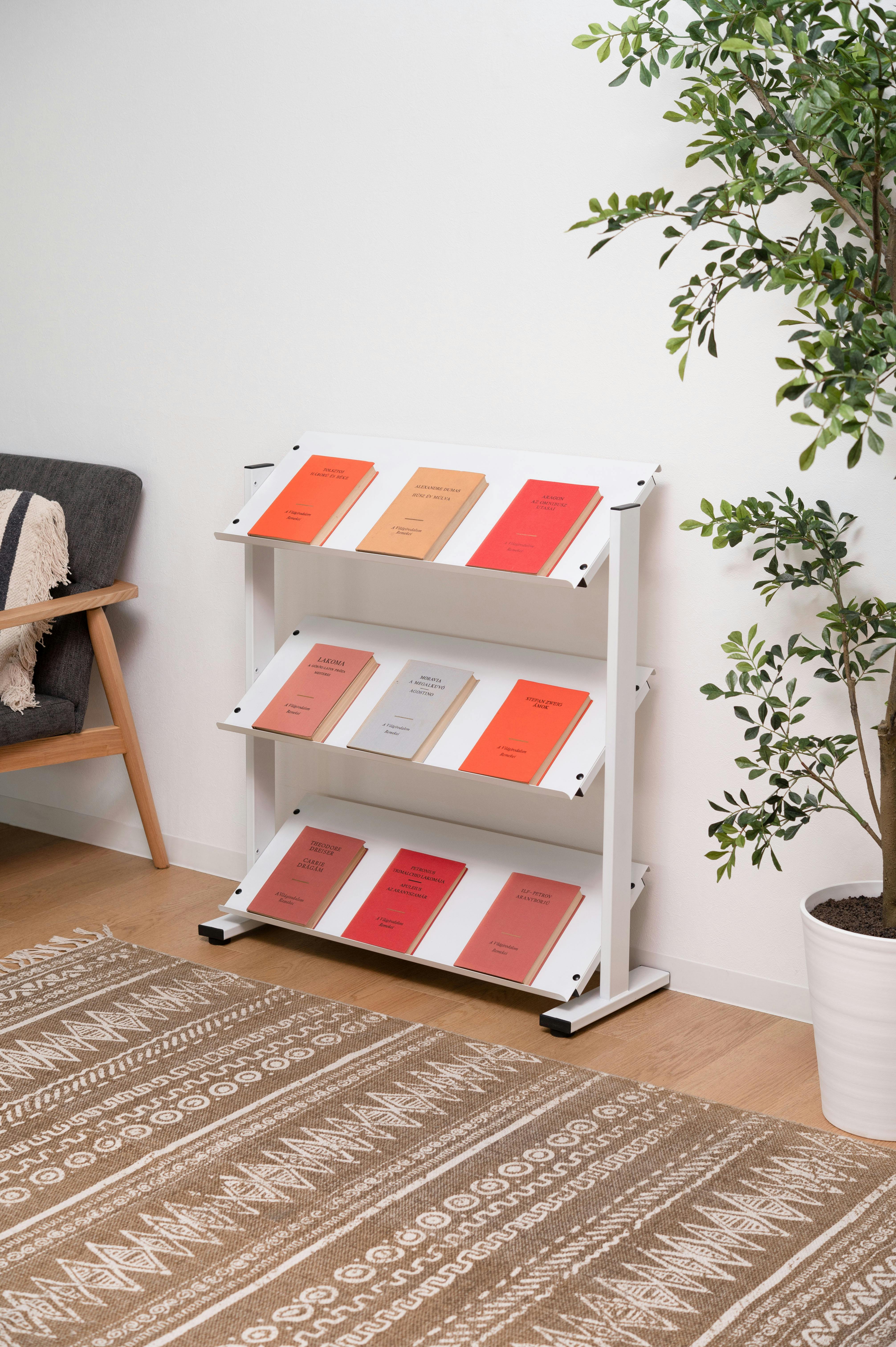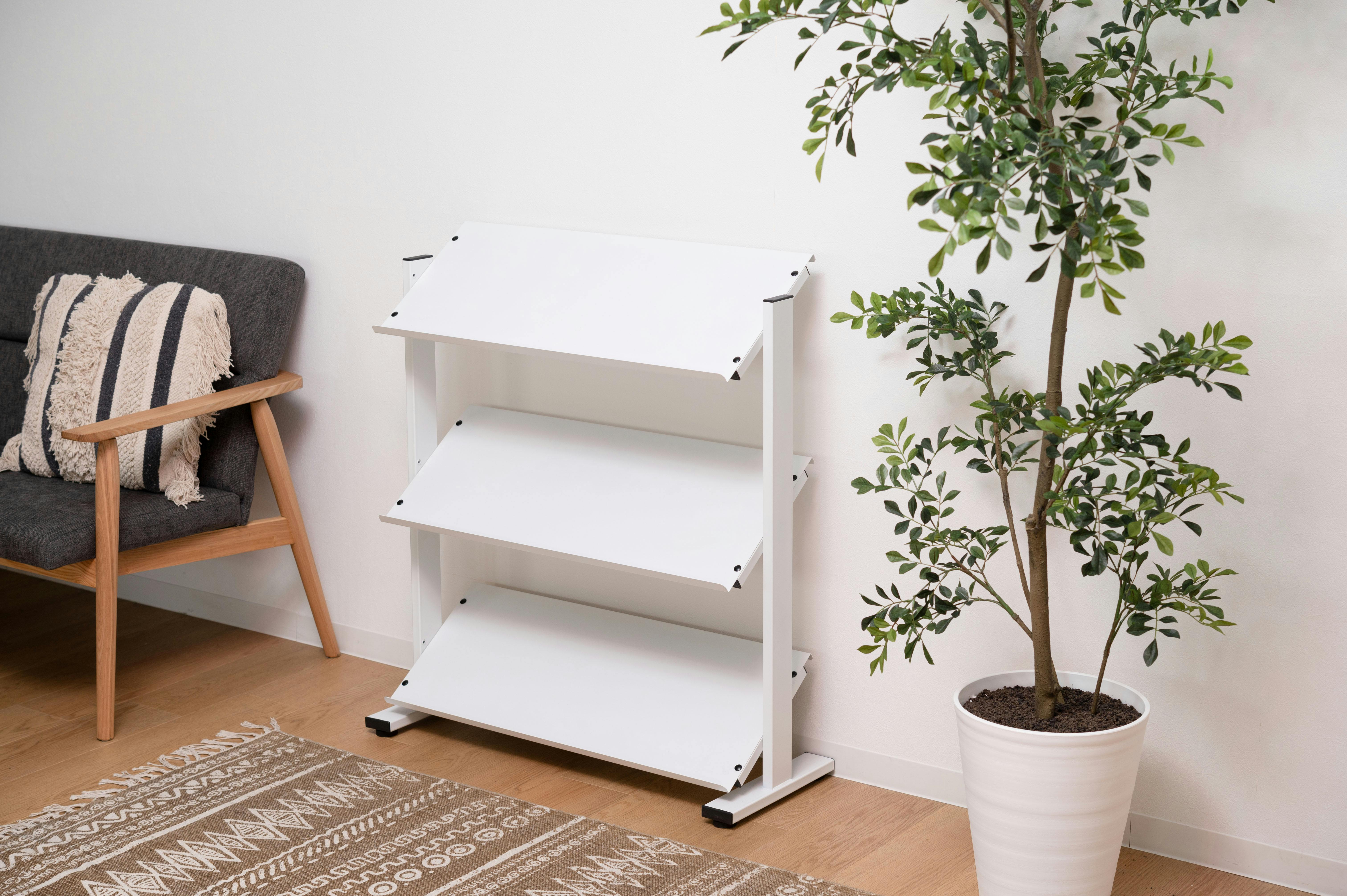 ラック 3段 シェルフ 棚 収納棚 オープンラック 本棚 斜め 店舗ディスプレイ 什器 スチール シンプル 黒 ブラック 白 ホワイト ブラウン