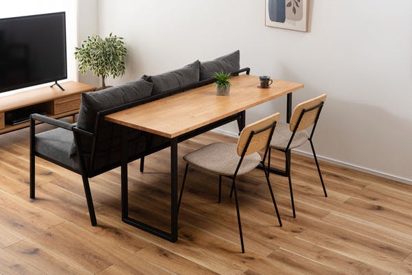 奥行きがコンパクトな設計の省スペースダイニングテーブル。豊かな天然木の表情を活かし、圧迫感のないスリムでモダンなデザインに仕上げました。ハイカウンターとは違ったダイニングサイズの高さ設計はリモートワークやキッチンカウンター、リビングダイニング風などレイアウトの幅が広がります。