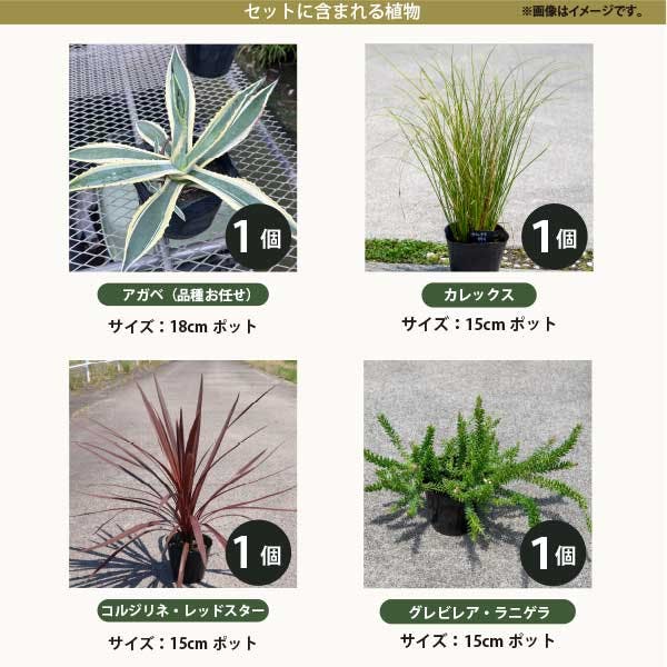 ■アガベ 18cmポット×1■カレックス 15cmポット×1■コルジリネ・レッドスター 15cmポット×1■グレビレア・ラニゲラ 15cmポット×1