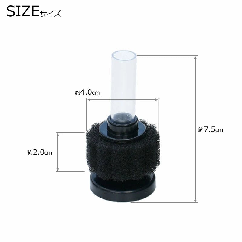 エアーポンプと接続して使う、お手入れ簡単、洗って繰り返し使えるエコなスポンジフィルター 30cm水槽以下推奨