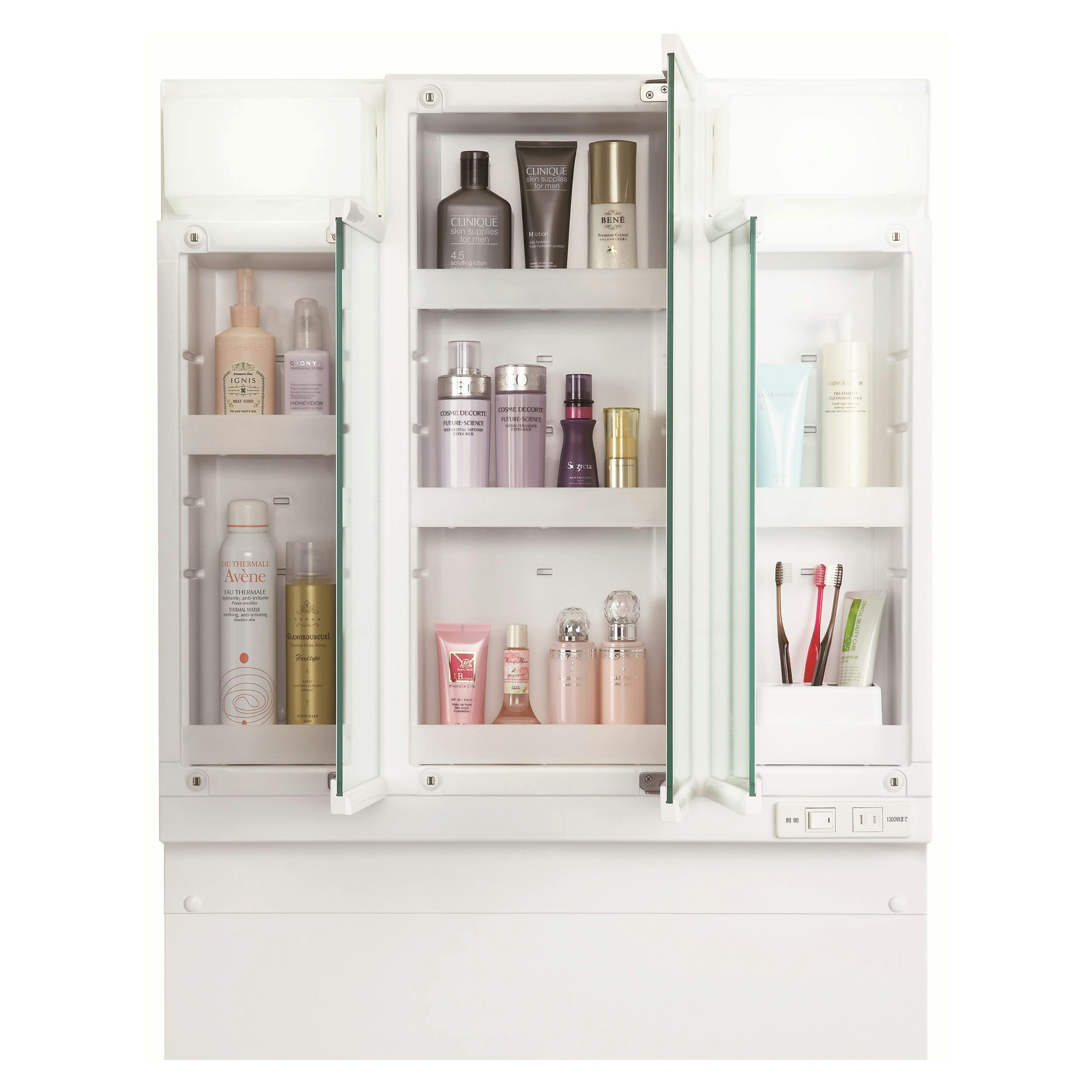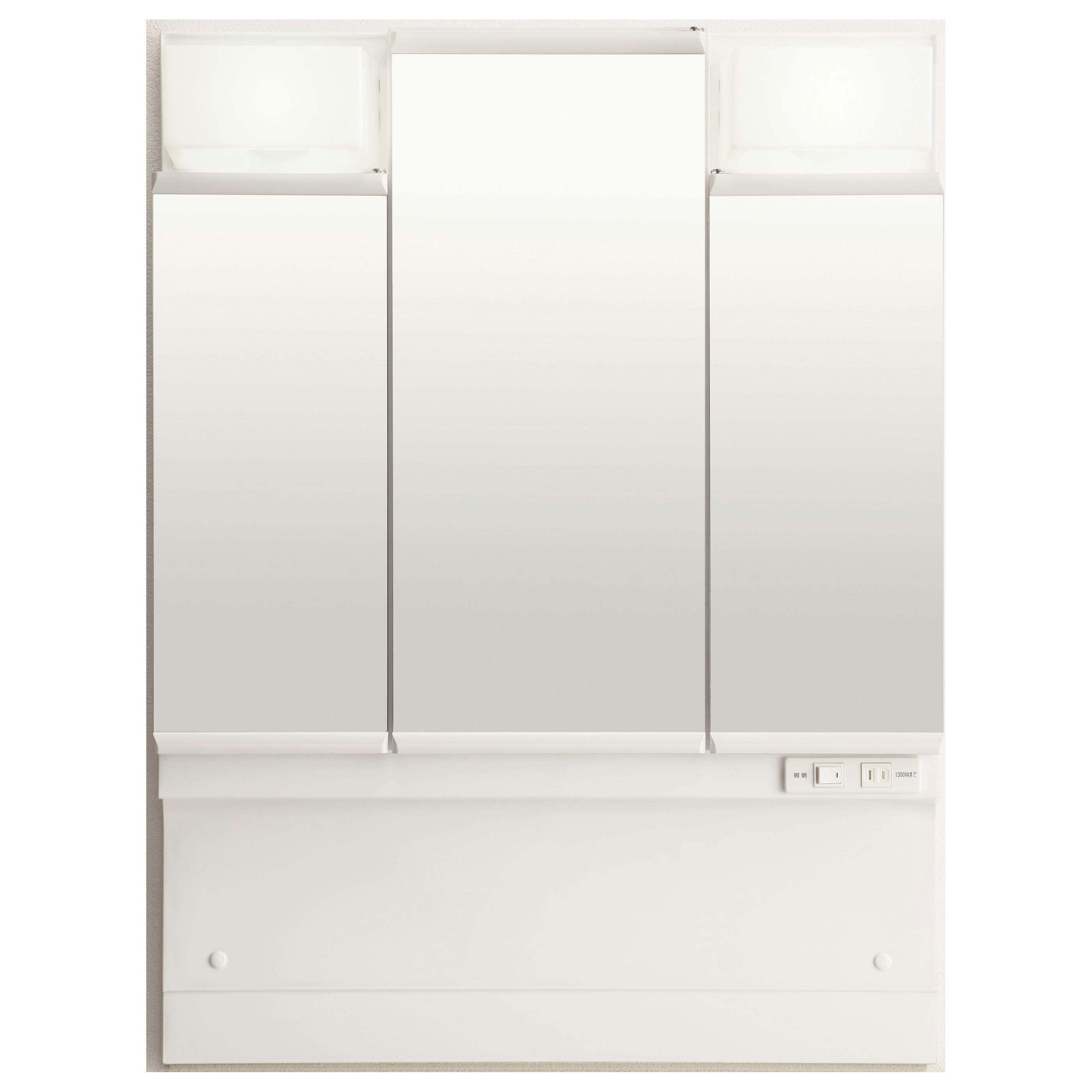 洗面化粧台 D7シリーズ 幅75cm 片引出タイプ シングルレバー洗髪シャワー水栓 一般地 3面鏡くもり止め付セット ホワイト D7H6-755SY-W/VP1W+MD7X4-753TYJU【別送品】