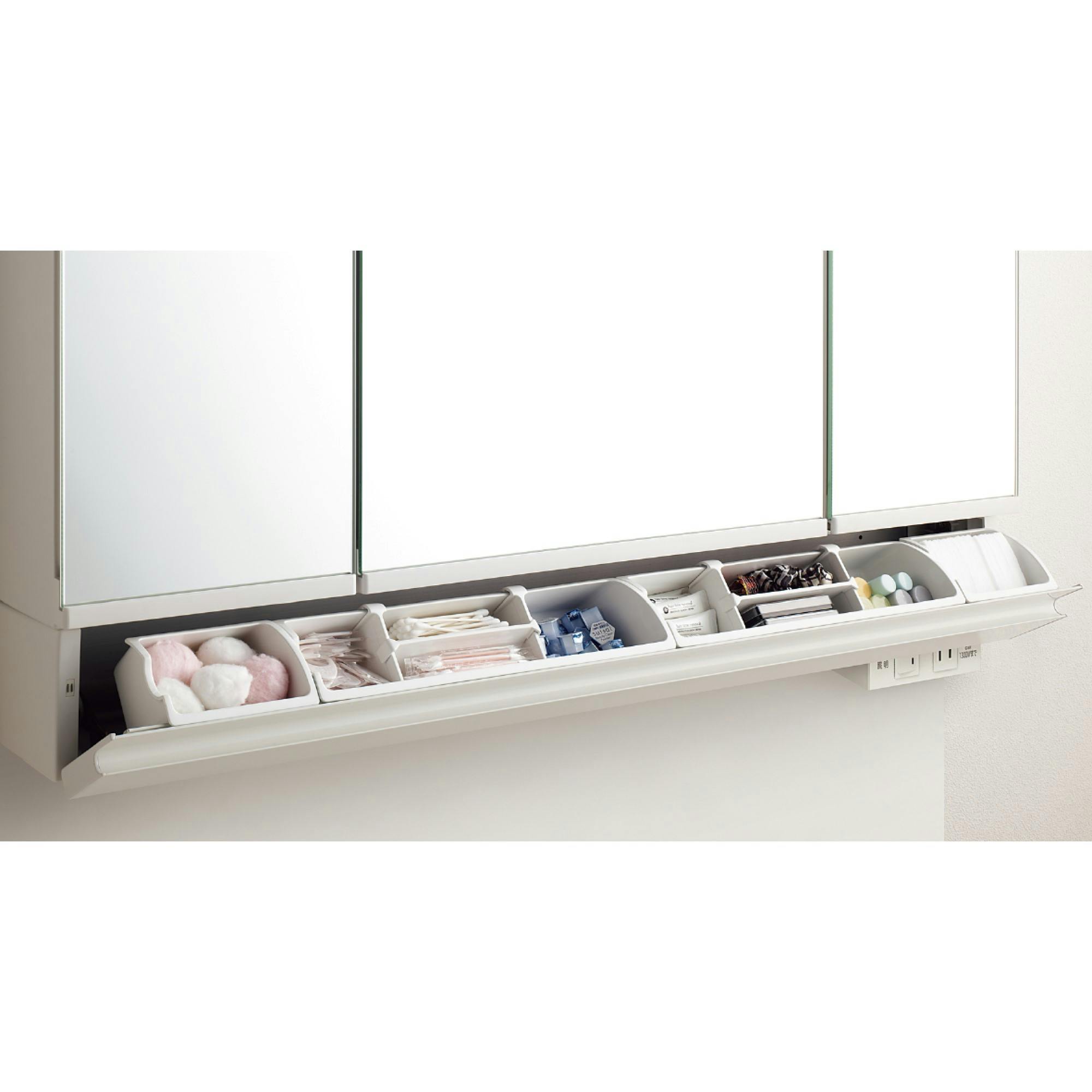 ●カラー:クリエペール ●片引出タイプ ●シングルレバーシャワー水栓/ホース収納式/整流吐水切替付/エコハンドル ●カウンター材質:人造大理石(ポリエステル系樹脂) ●洗面器容量:20L ●くるくる水栓:使いたい位置に180度回転 ●ひろびろボウル:底が広くて作業しやすい大容量ボウル ●新てまなし排水口:フランジレスでお掃除カンタン●3面鏡全収納:扉裏全収納タイプ ●くもり止めコート:消費電力ゼロでくもらない鏡 ●スマートポケット:小物をスッキリ収納●LED照明(6W) ●コンセント:3個