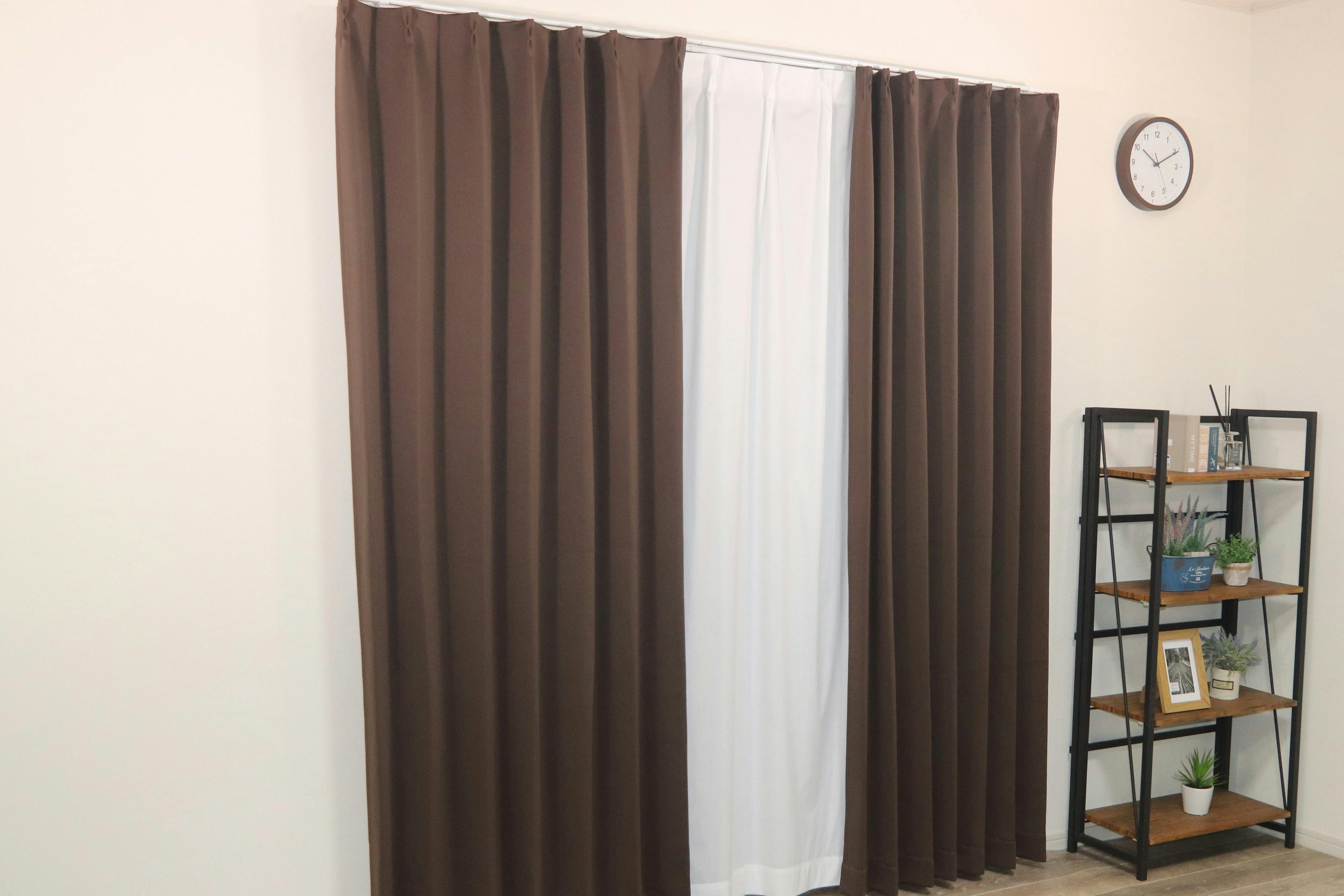 燃えにくく、シンプルなデザインの無地遮光厚地カーテン 防炎ラベル付き