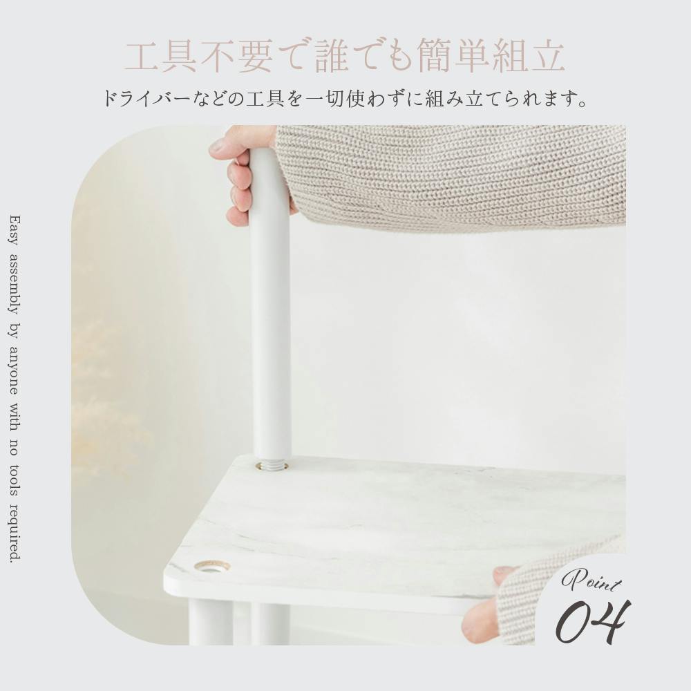・耐荷重/全体:30kg 天板・棚板:各10kg 下部棚板:10kg※耐荷重数値は試験値であり保証値ではありません。・各部分がしっかりと固定されていることを確認してからご使用ください。不十分な状態で使用すると、転倒や破損の原因となります。・水分・油・洗剤などが付着した場合、すぐに取り除いてください。変色やサビなどの原因になります。