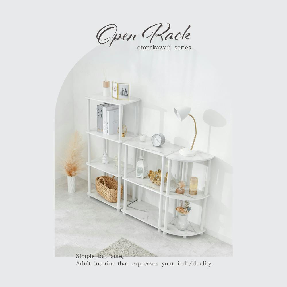 使いやすいシンプル設計なのでどんなお部屋にも合わせやすい。オープンラックで圧迫感もなく、出し入れもスムーズ。天板の角は丸みのあるデザインのため触れても痛くありません。