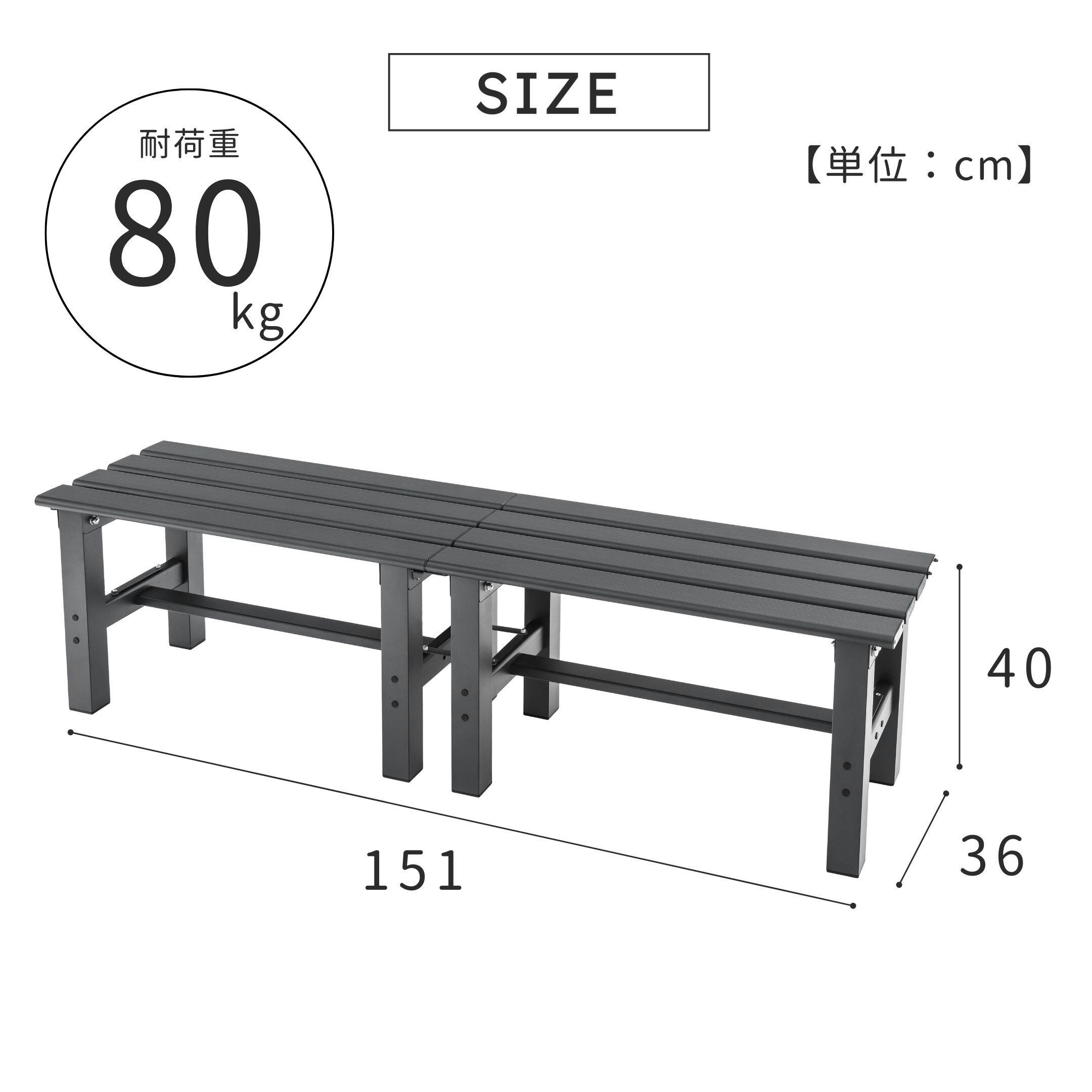・耐荷重/80kg・傾斜地や段差のある場所など、不安定な場所でのご使用は危険ですので、おやめください。また、風通しのよい場所に設置してください。・ビニール床、タイル、鉄板、濡れた床などのすべりやすい場所やキズ付きやすい場所で使用しないでください。・縁台の両端には乗らないでください。また、縁台の上で勢いよく座ったり、跳ねたりしないでください。転倒・破損など、事故の原因になります。