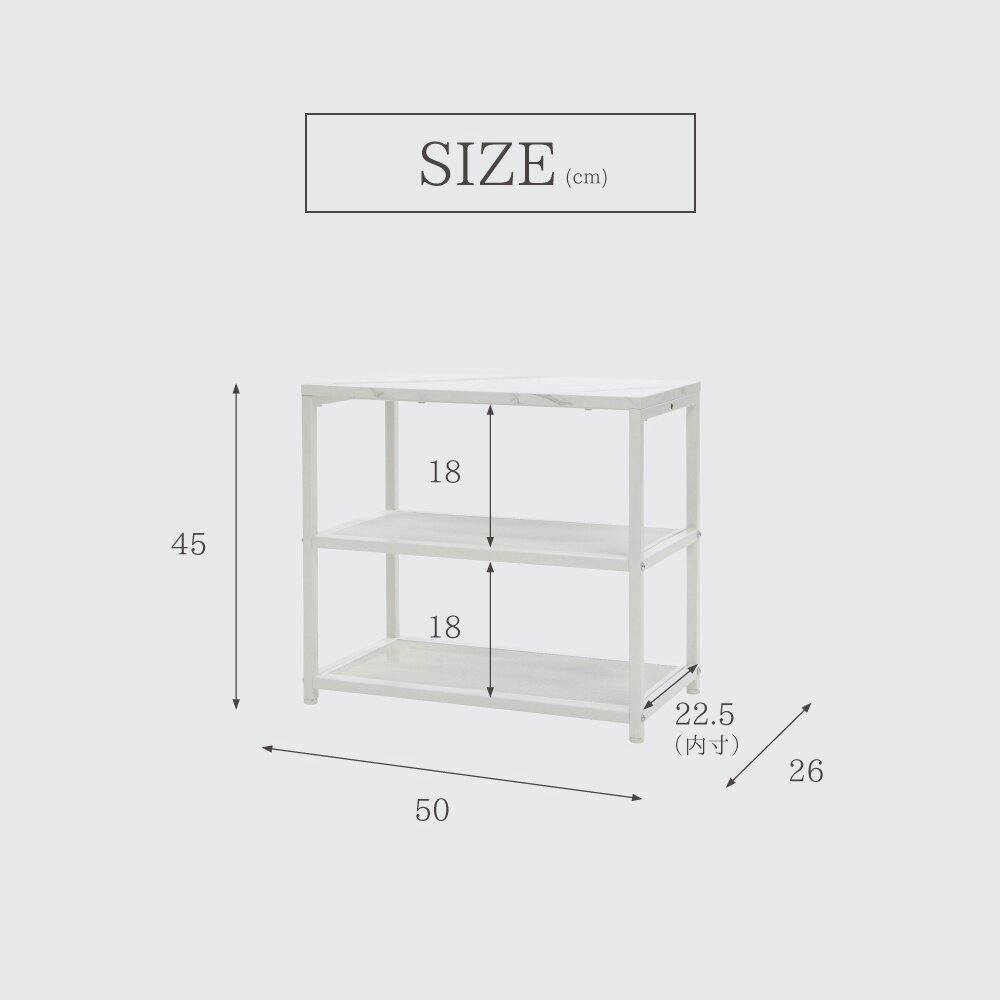 ・耐荷重/天板:80kg 棚:各10kg※耐荷重数値は試験値であり保証値ではありません。使用状況により、耐荷重以下であっても破損するおそれがあります。・一箇所に片寄った荷重をかけないでください。転倒するおそれがあります。・各部分がしっかりと固定されていることを確認してからご使用ください。不十分な状態で使用すると、転倒や破損の原因になります。