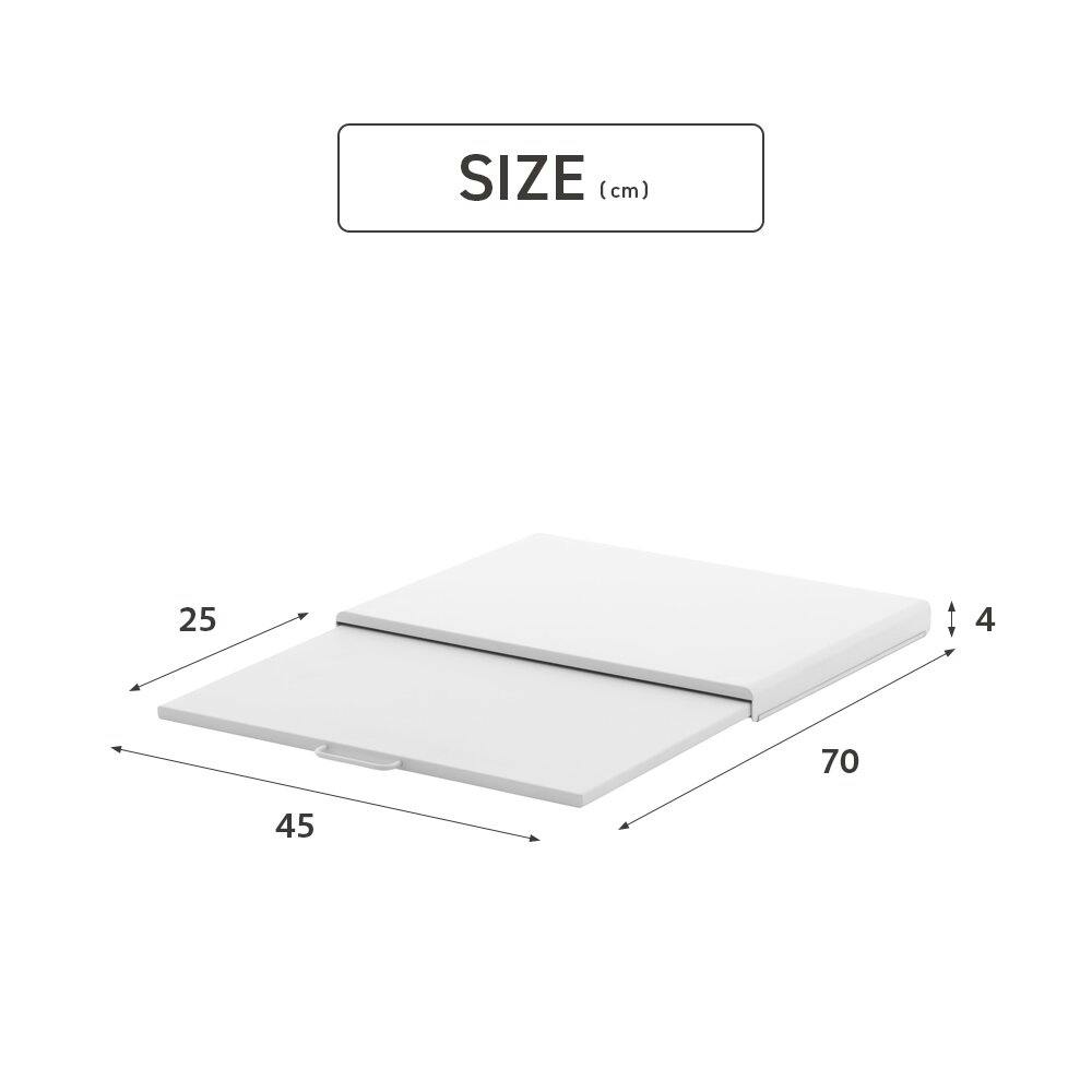 ・耐荷重/天板:30kg トレー:3kg ※耐荷重数値は試験値であり保証値ではありません。使用状況により、耐荷重以下であっても破損するおそれがあります。・一箇所に片寄った荷重をかけないでください。転倒するおそれがあります。・ご使用の際は転倒しないように天板に必ず5kg以上のものを置いた状態で使用してください。・転倒や変形の原因になりますので、硬く平らな安定した場所に設置してください。
