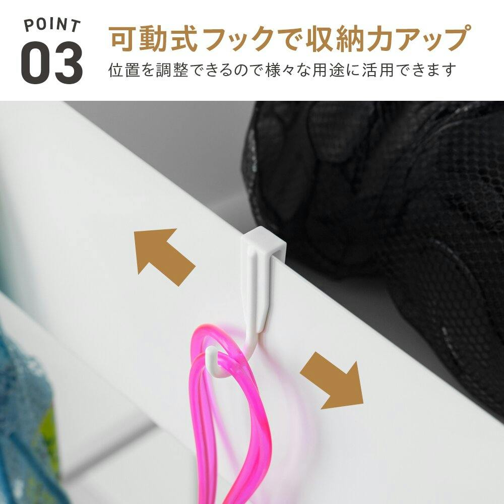 ・耐荷重/バスケット:5kg 収納棚1段・2段:2kg フック:各250g※耐荷重数値は試験値であり保証値ではありません。使用状況により、耐荷重以下であっても破損するおそれがあります。・一箇所に片寄った荷重をかけないでください。転倒するおそれがあります。・バスケット内・フックにかかる荷重は均等にしてください。片寄った荷重をかけると転倒や破損の原因となります。
