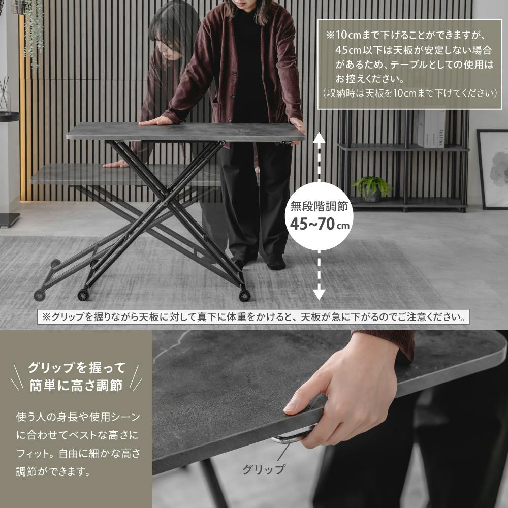・危険ですので、お子様に昇降させないでください。また、お子様のいたずらには十分注意してください。・天板の上に、熱い鍋・やかんなどを直接置かないでください。熱による表面加工はがれや割れの原因となります。