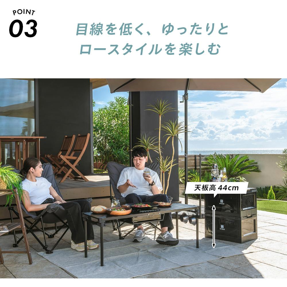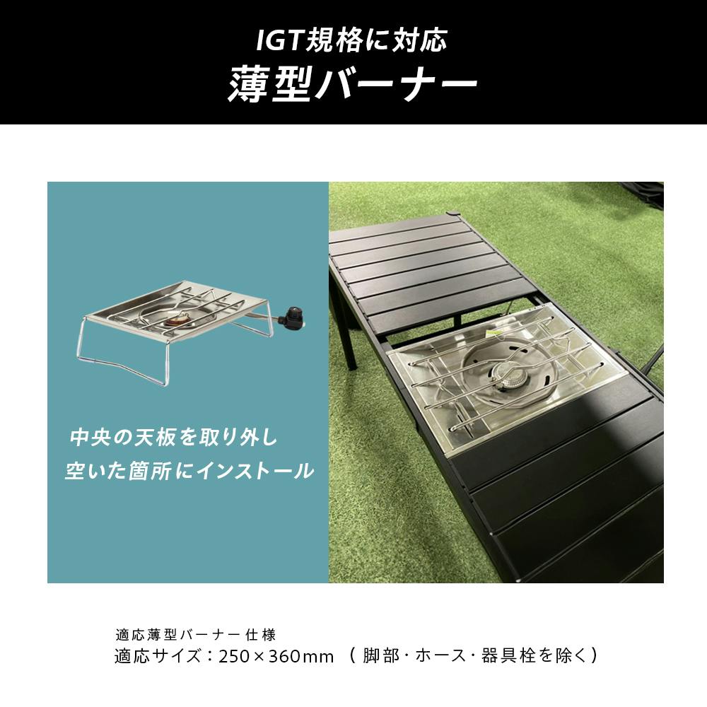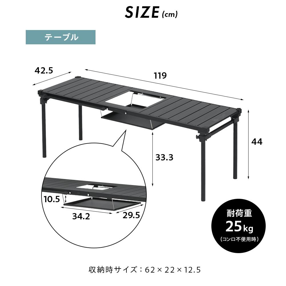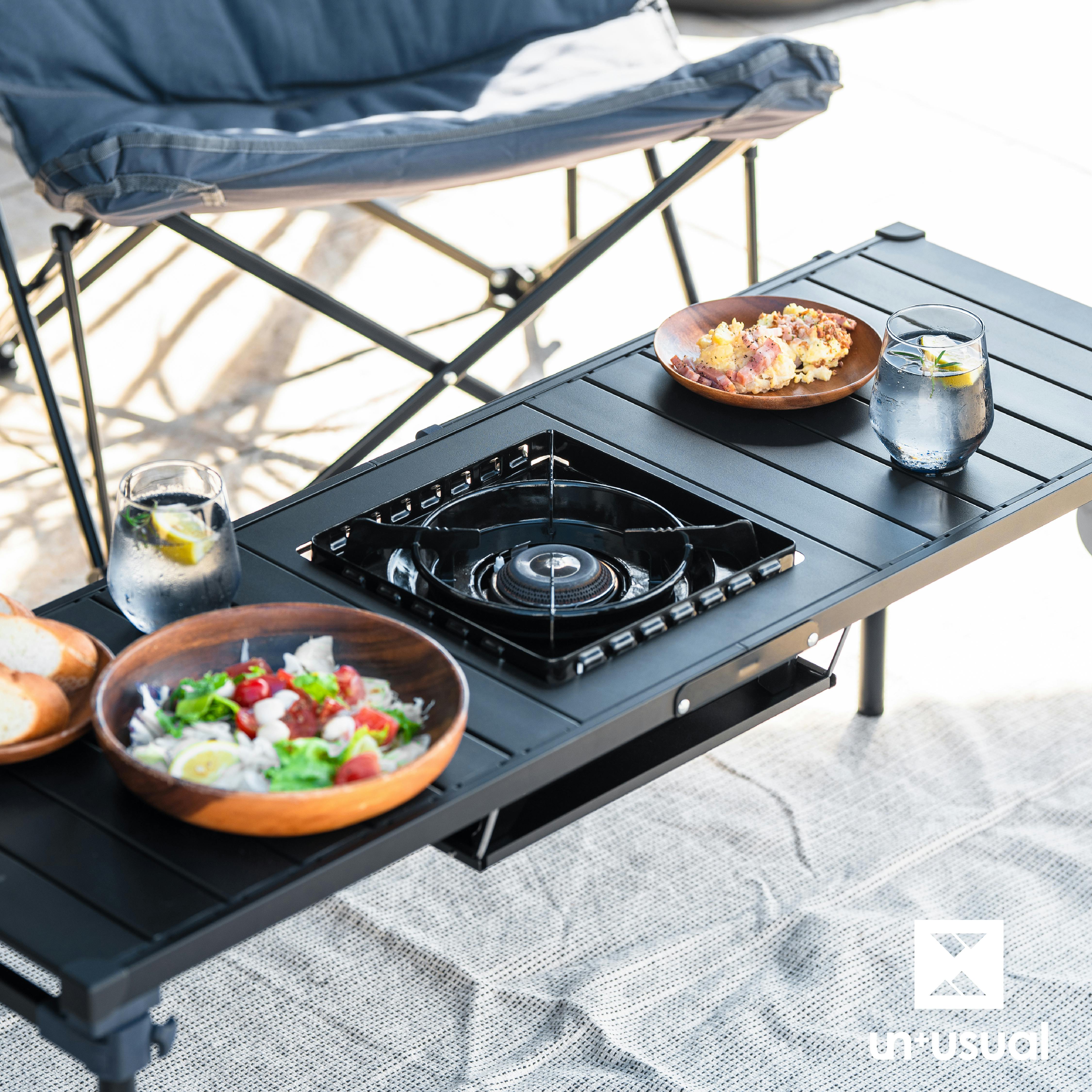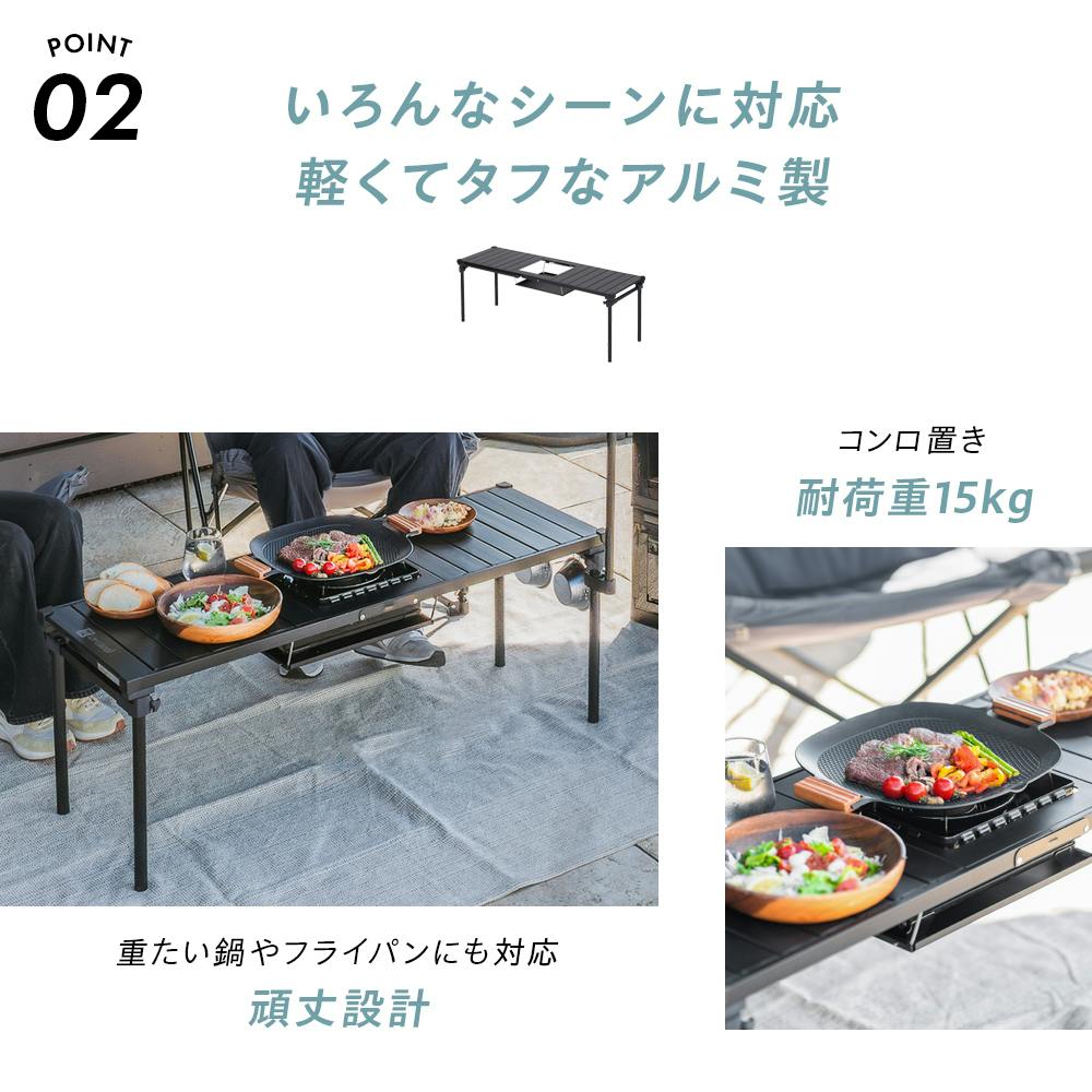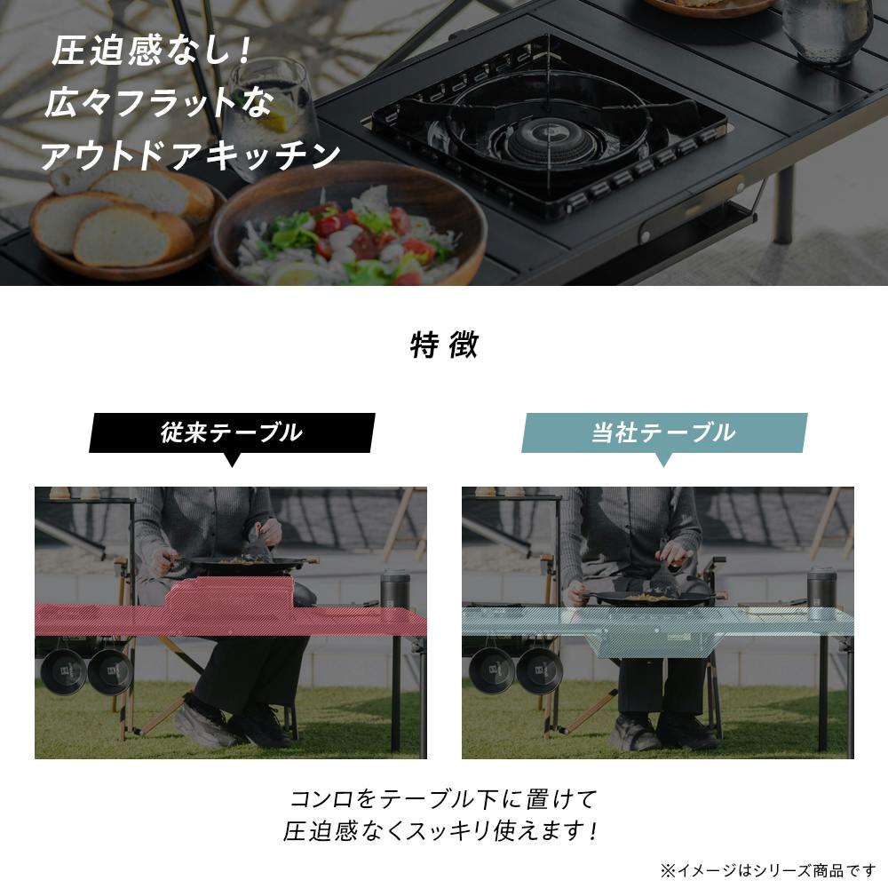 コンロが置けるマルチテーブル ブラック 119×42.5×44cm バーベキュー レジャー キャンプ UN3-CT120BK【別送品】