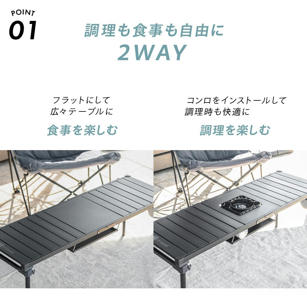 ・耐荷重:全体25kg、コンロ不使用時の天板25kg、コンロ置き15kg・転倒や変形の原因になりますので、安定した平らな場所に設置してください。・収納する際は、組み立てたときと逆の手順で解体します。最初に入っていた状態で収納してください。無理に入れると全てのパーツが収まらない場合があります。