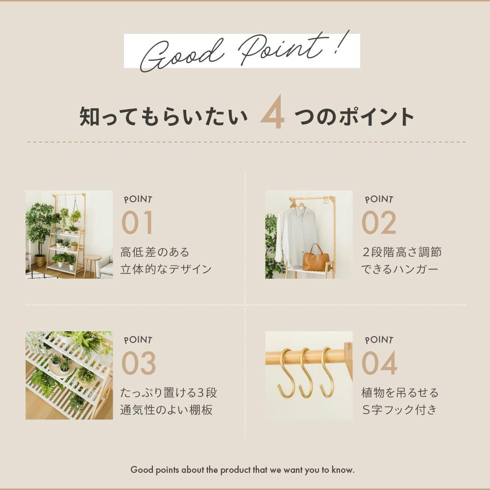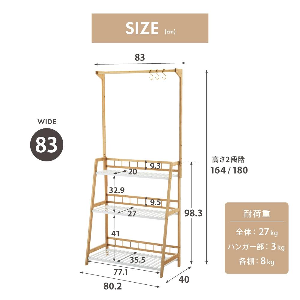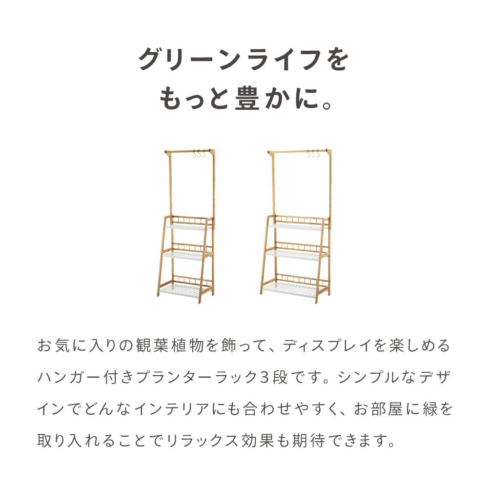 ハンガー付き プランターラック3段 ホワイト/ナチュラル 83×40×164/180cm W80LN-E-HPR80 観葉植物 収納 植木鉢 LN-E-HPR80【別送品】