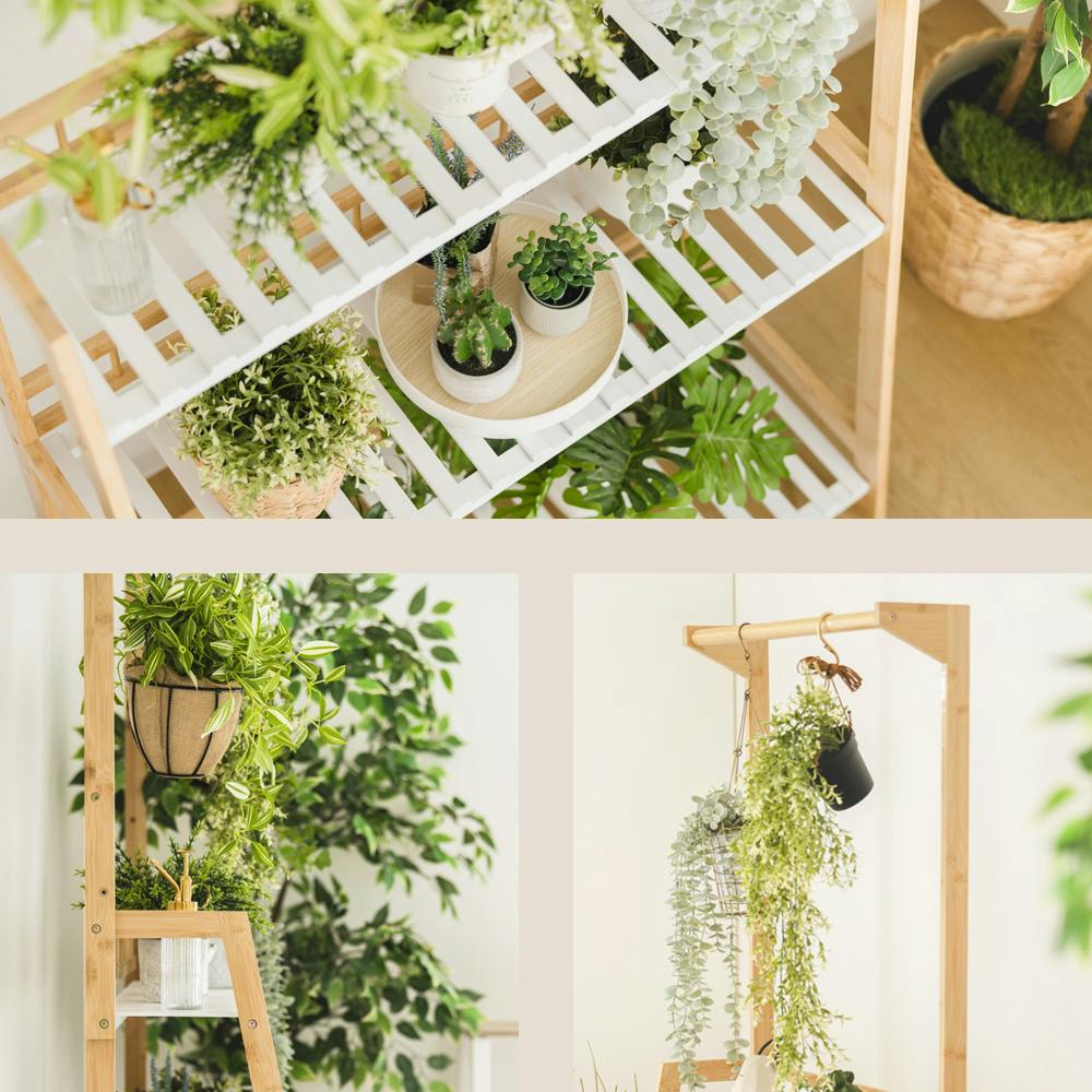 付属のS字フックを使えば、植物を吊るして飾ることも可能!