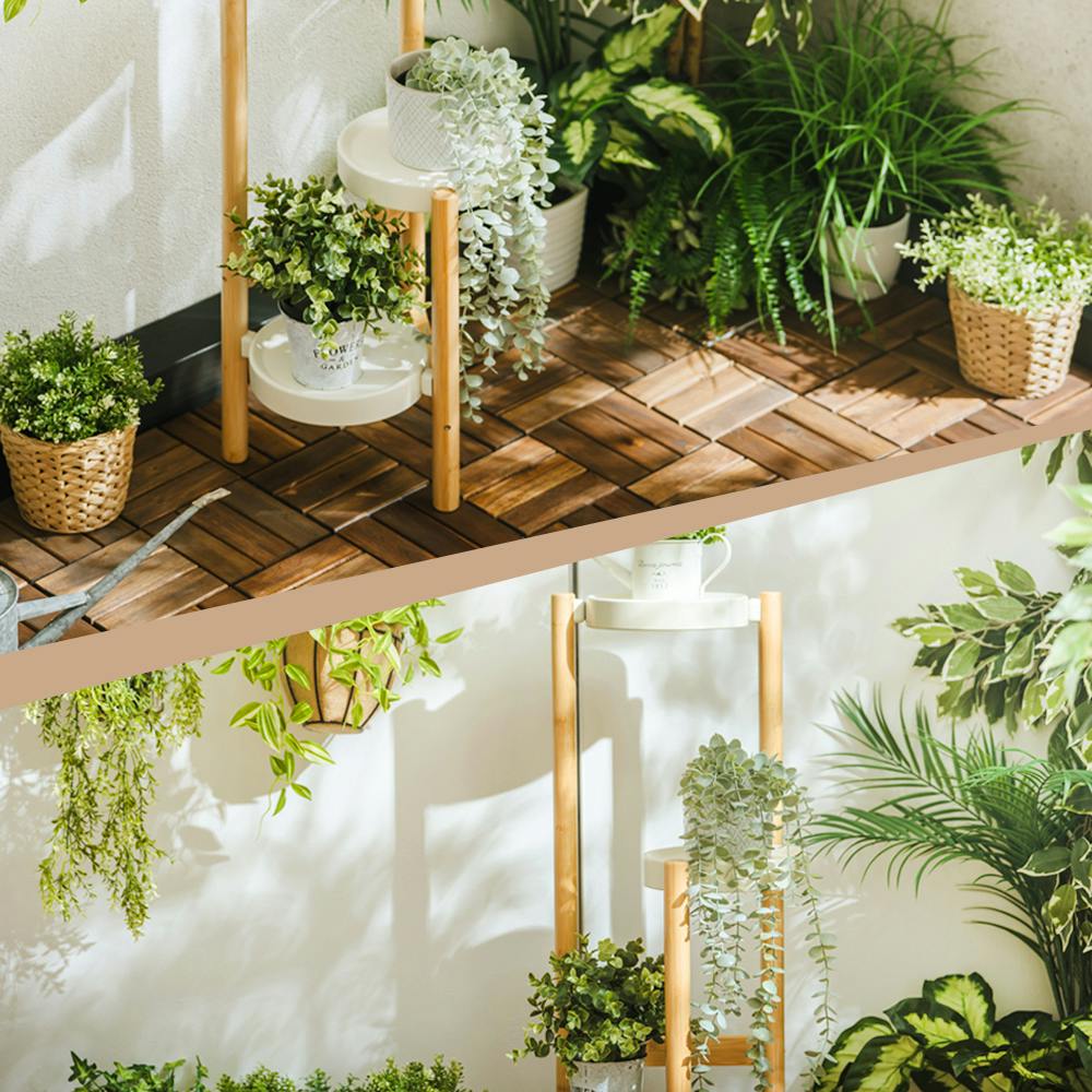 丈夫なスチール製のプレートには観葉植物や小物などを置けます。