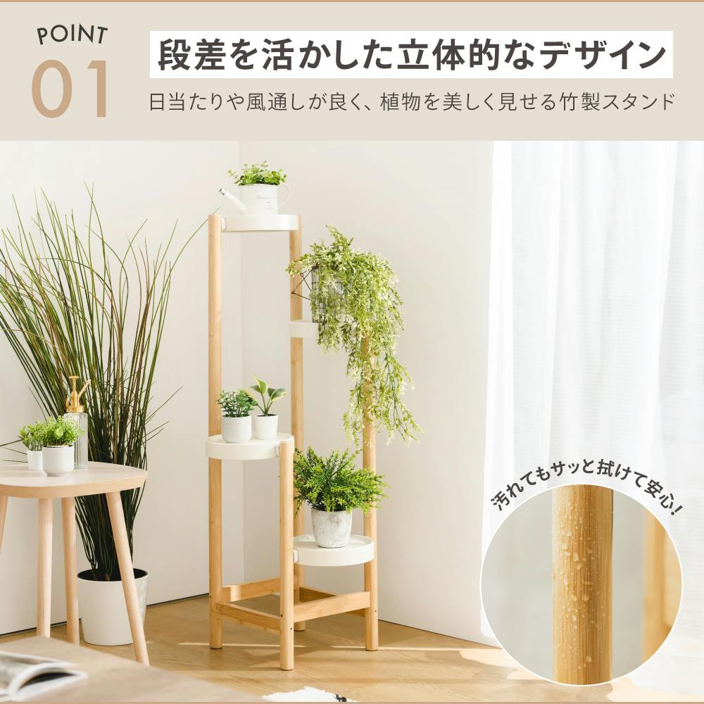 プランタースタンド M ホワイト/ナチュラル 31×34×80cm 観葉植物 収納 植木鉢 LN-E-PSM【別送品】