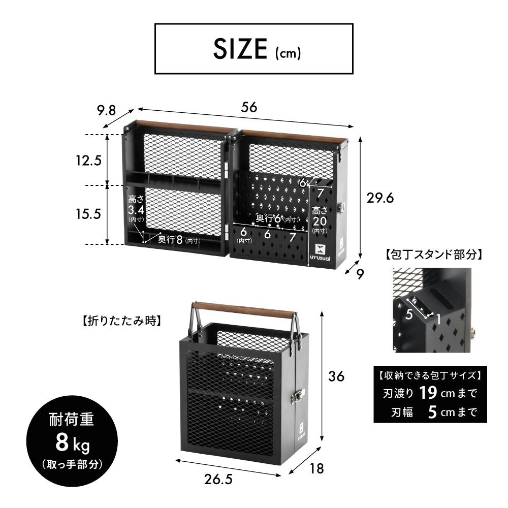 ・耐荷重:取っ手部分8kg・開閉は平らな場所に置いておこなってください。持ったまま開閉すると収納物が落下するおそれがあります。・割れ物や刃物を入れて使用する際、持ち運びや開閉時など取り扱いにご注意ください。