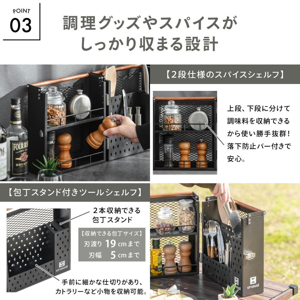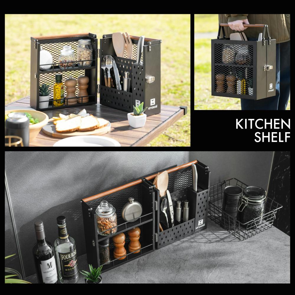 キッチンシェルフ ブラック 26.5×18×36cm バーベキュー レジャー キャンプ UN5-KS35BK【別送品】