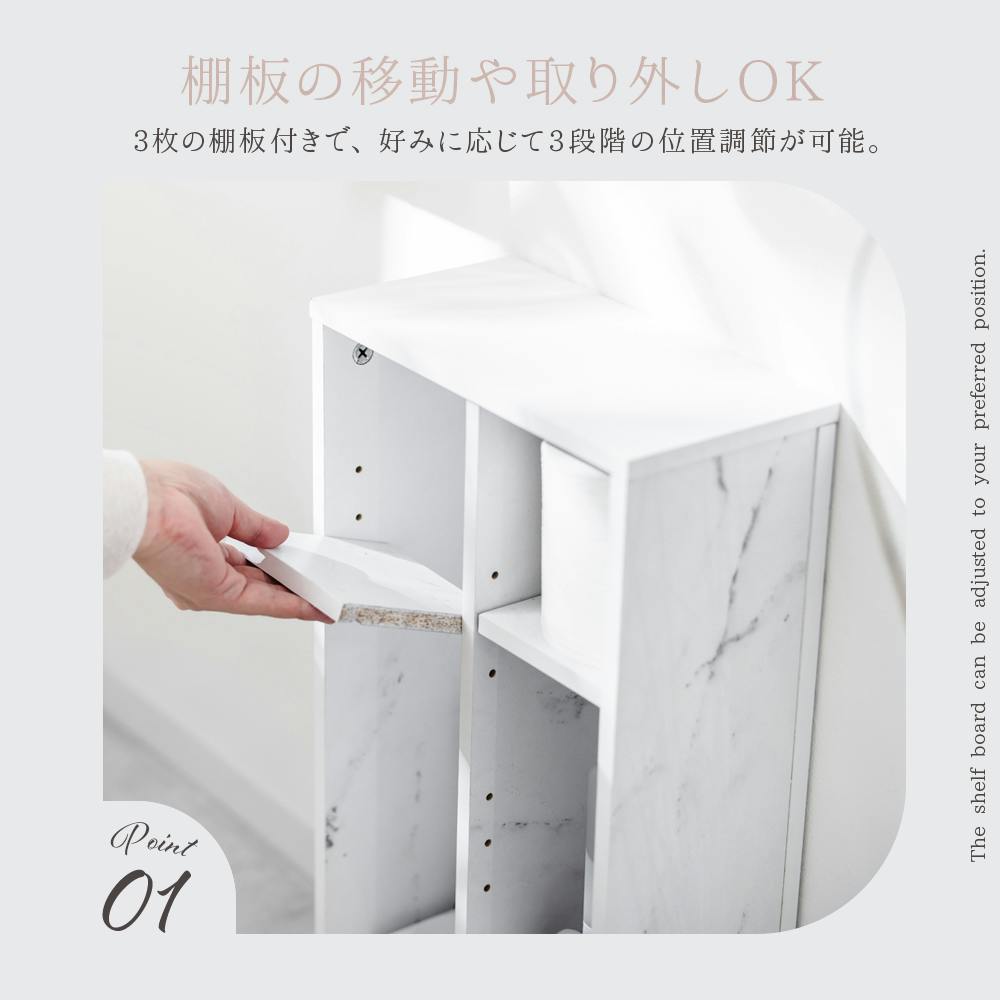 ・耐荷重:天板10kg、棚各5kg、底板10kg・使用する際、一箇所に片寄った荷重をかけないでください。転倒するおそれがあります。・無理な力をかけて組み立てないでください。破損などの原因となります。・転倒の原因になりますので、安定した平らな場所に設置してください。