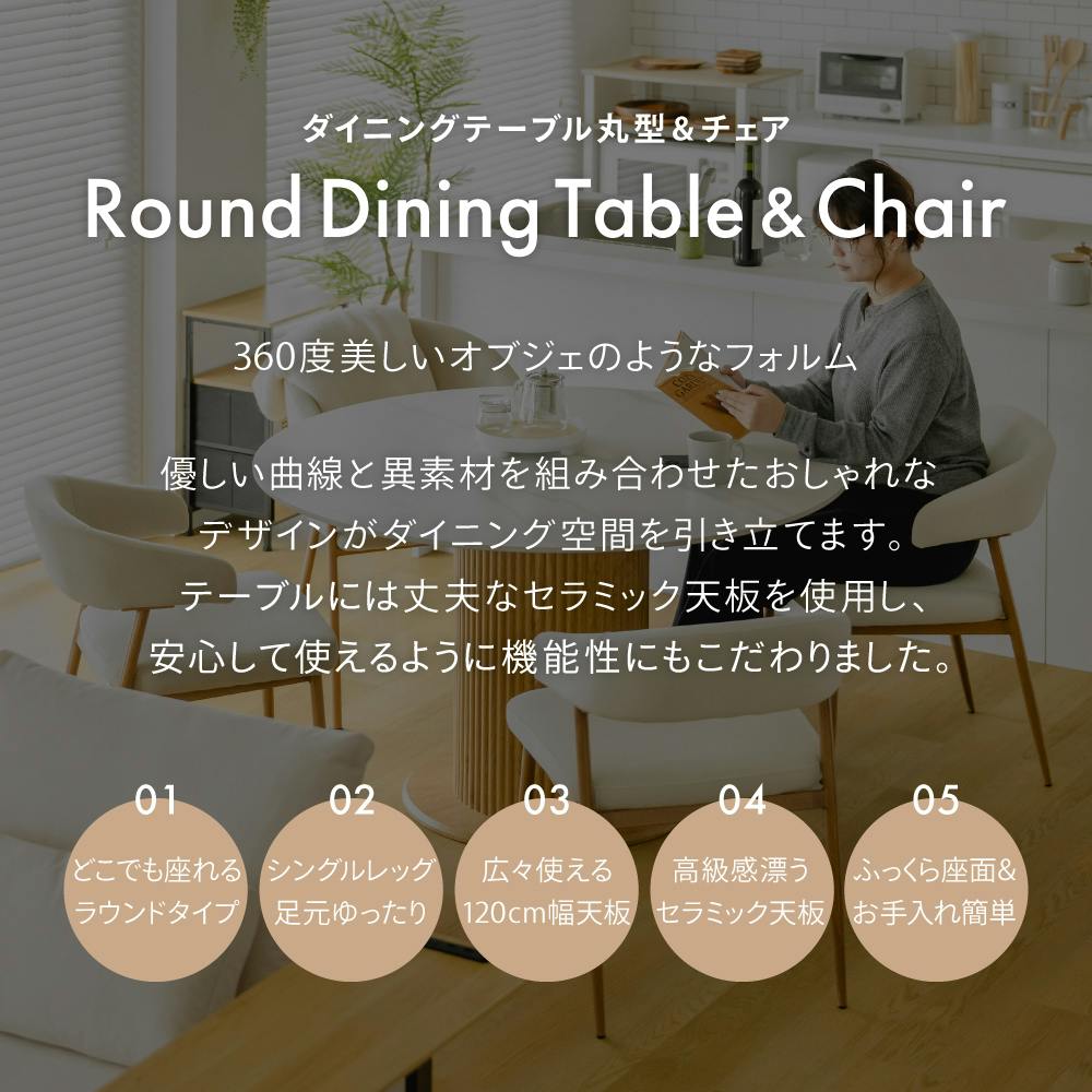 セラミックダイニングテーブル丸型NA ナチュラル 120×120×72cm リビング お手入れ簡単 足元ゆったり LN-H-SDTMNA【別送品】