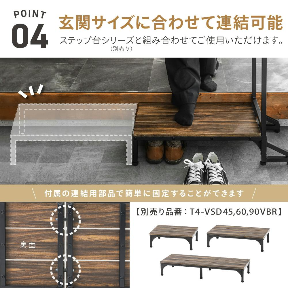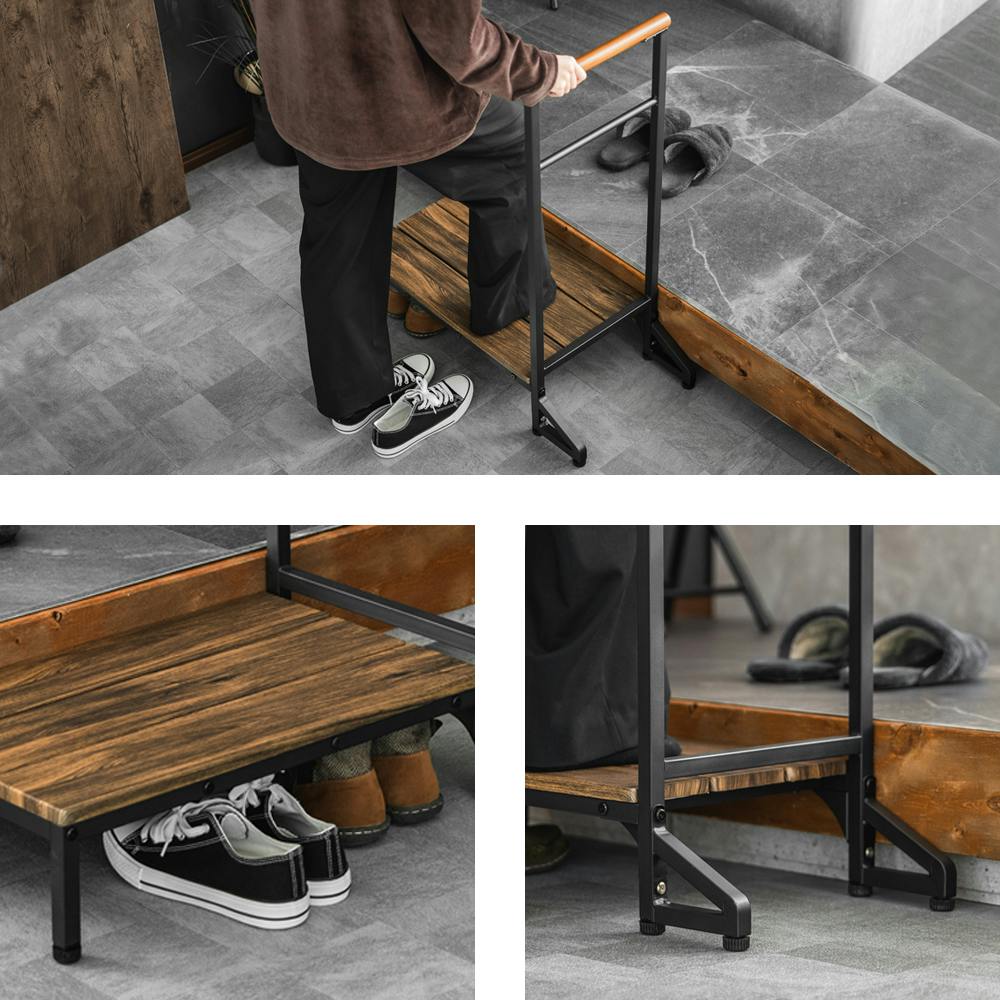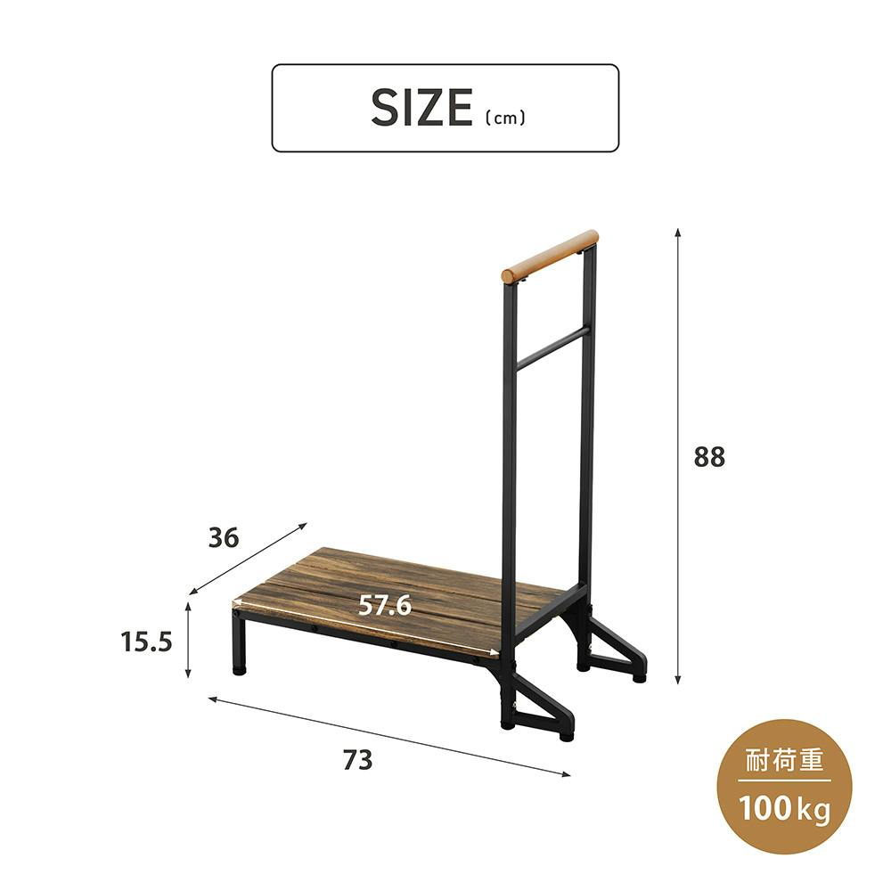 ヴィンテージ調 手すり付連結できるステップ台 ブラウン 73×36×88cm 玄関 介助 サポート T4-TSD73VBR【別送品】