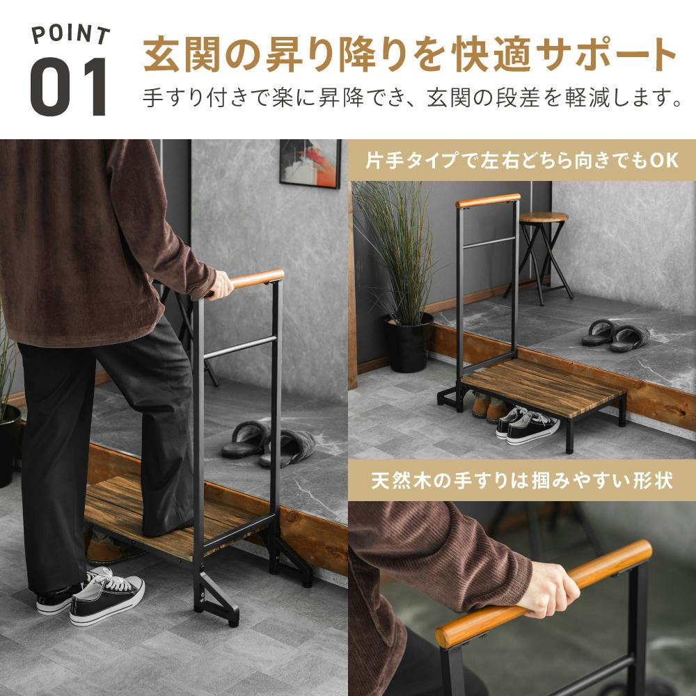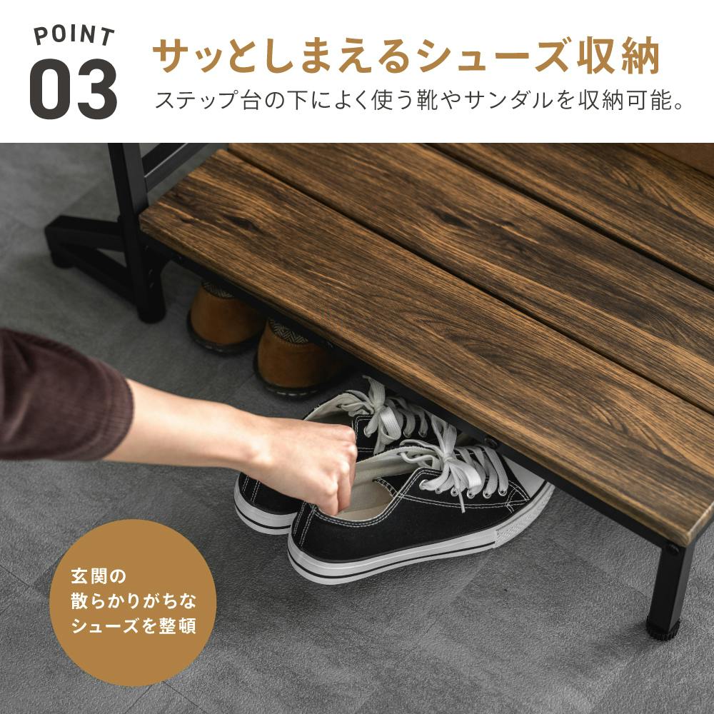 ・耐荷重:100kg・一般家庭の玄関の上がり口に設置してください。・転倒や変形の原因になりますので、必ず安定した平らな場所に設置してください。傾斜した場所や段差をまたぐ場所に設置しないでください。・スリッパなどを履いてステップ台にのらないでください。すべって転倒するなど、事故の原因になります。