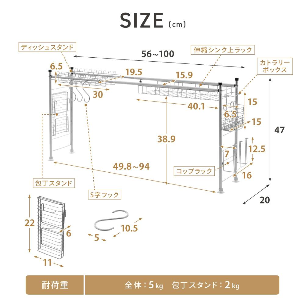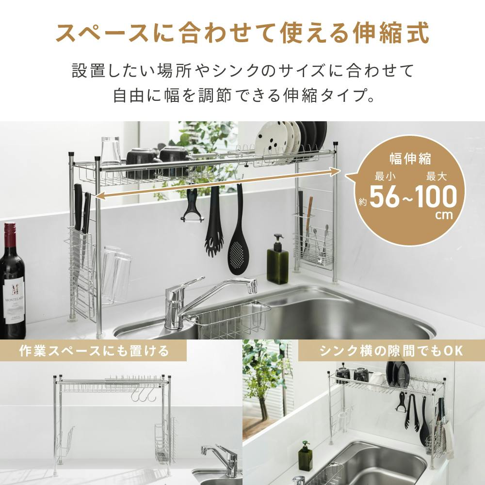 シンク上ラック6点セット シルバー 56~100×20×47cm キッチン 水切りラック 省スペース CFSN0801-201【別送品】