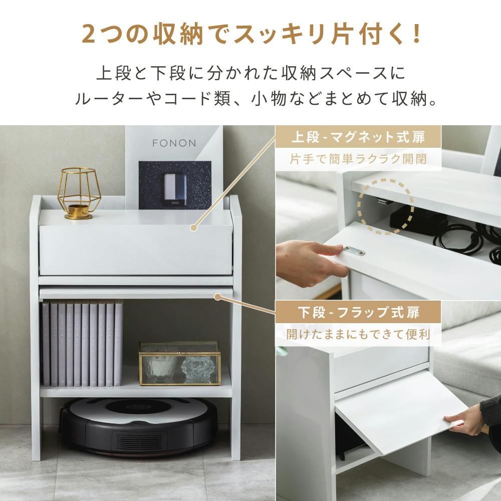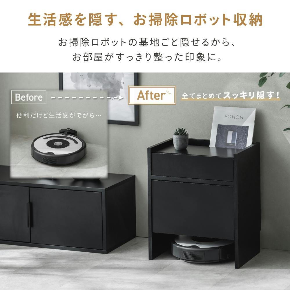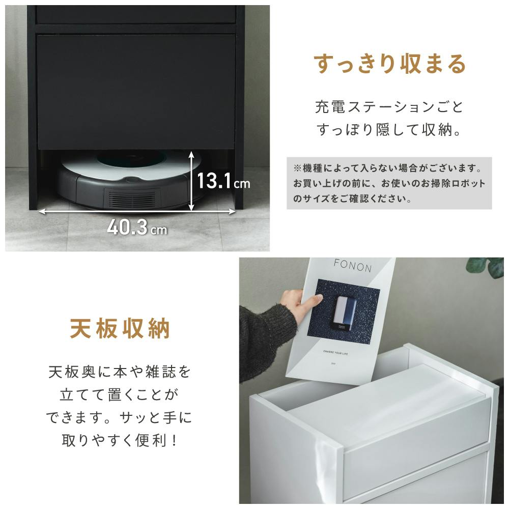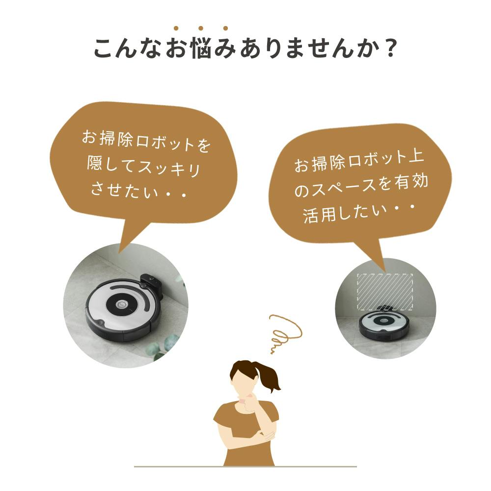お掃除ロボット、散らかりがちな小物など、すべてまるごとかくして収納、お部屋すっきり。(※機種によって入らない場合がございます。お買い上げの前にお使いのお掃除ロボットのサイズをご確認ください。)