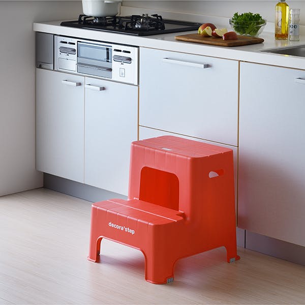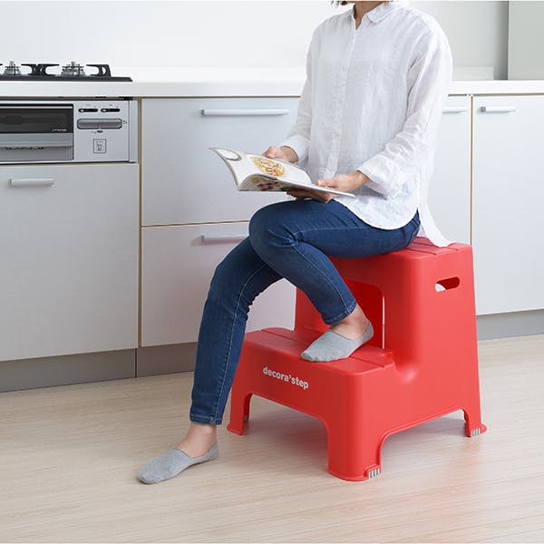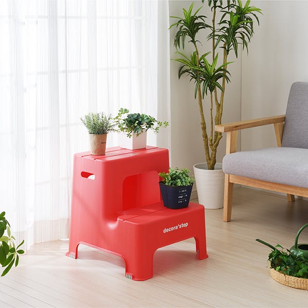 SANKA squ+ サンカ デコラステップ 踏み台 昇降ステップ台 レッド 2段 広い足のせ部分と滑り止め加工耐荷重100kg 軽量設計 日本製 子供 トイレ 玄関 洗面所 洗車台 足台 キッズ 室内 (幅43.5×奥行48.3×高さ45cm) DS2-RE-1【別送品】