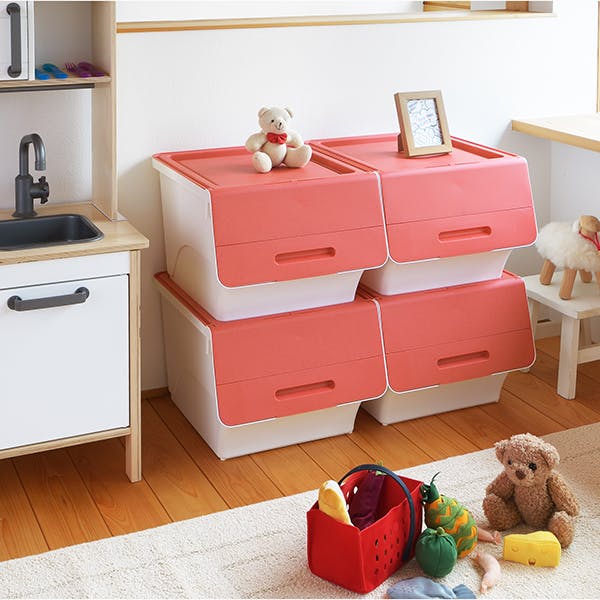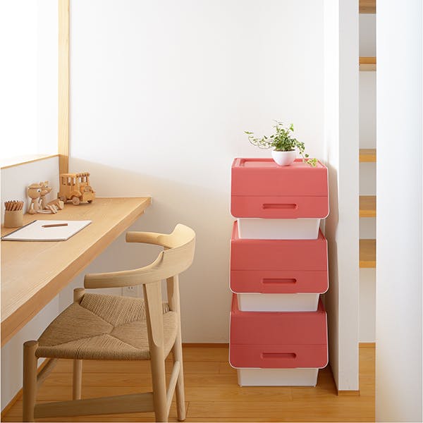 SANKA squ+ サンカ フロック 重ねて使える蓋付き衣装ケース froq fr-30PWH 3個組 ピンク 大容量収納 引き出さずに使える前面開閉式 カパっとひらく固定できるフタ日本製(幅38.5×奥行46×高さ31cm) fr-30PWH-3【別送品】