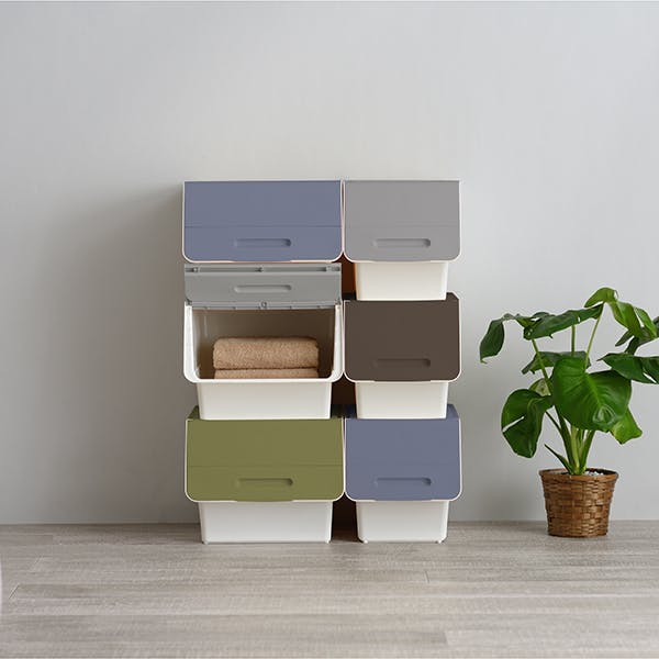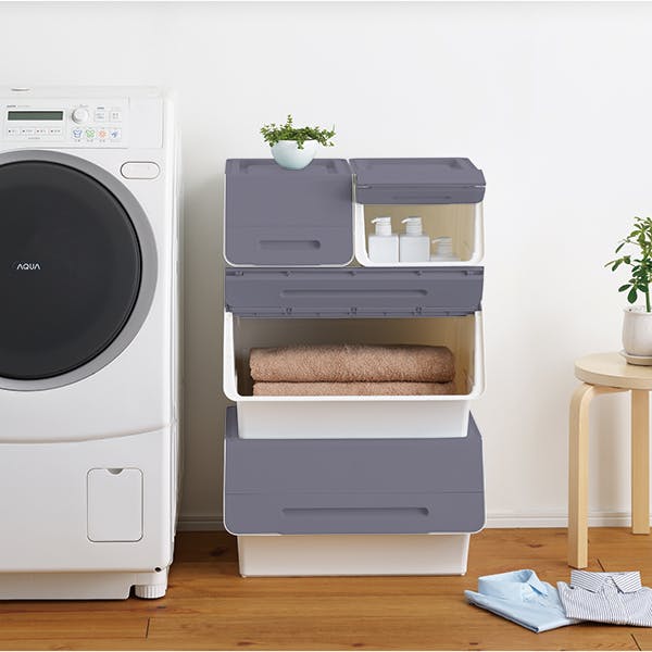 ■前面開閉式だから、積み重ねても下に入っているものが取り出せる■蓋がカパッと開いてそのまま固定できるから出し入れラクラク■5つのサイズを自由に組み合わせできる■別売りキャスターで移動ラクラク!■収納目安(約) ・トレーナー…8枚・Yシャツ…22枚・バスタオル…8枚