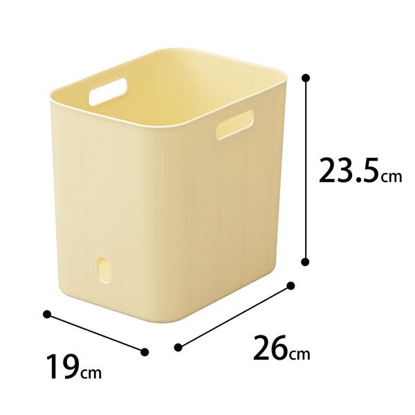 やわらか素材ポリエチレンからできた収納ボックス。やわらかいので小さなお子さまにも使いやすく、持ち運ぶときも手が痛くなりにくい♪汚れたら水洗いでき、落としても割れにくいので、長くご愛用いただけます。■カラーボックスにすっきり収まる■持ち運びに便利な取っ手穴■別売りのフタを使うことで、キレイに重ねてすっきり収納することができます。